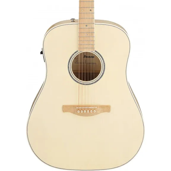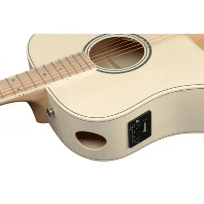 Ibanez AAD77M1E är en westerngitarr med mikrofon som kombinerar god spelkomfort med ett balanserat och tydligt akustiskt ljud. Modellen passar både för hemmabruk, studio och livespel, med en Open Pore Antique White-finish och konstruktion anpassad för moderna gitarrister.