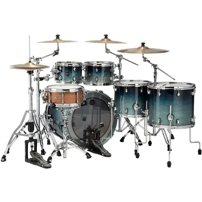 Trumset i lönn och valnöt med grundare pukor - Teal Blue Fade