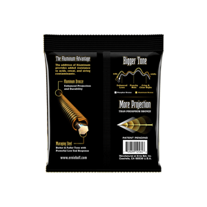 Aluminum Bronze-serien har en hög andel aluminium blandat i lindningstråden vilket ger en sträng med otroligt härlig krisp men som även har en fantastisk botten. Aluminiumen gör även att smuts & fett stöts bort så stängarna låter nya och fräscha längre.