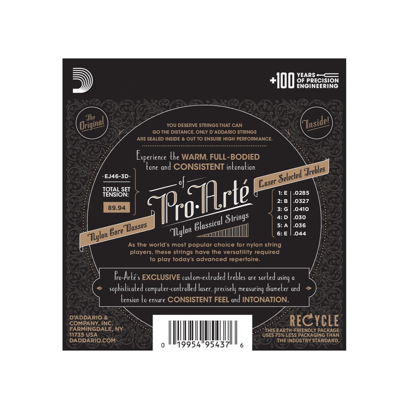 Pro Arté är D'Addarios mest säljande sträng för klassisk gitarr. Uppskattad för sin perfekta balans av ton, spelkänsla och dynamik. Flera års lång utveckling ledde fram till Pro Arte serien där varje strängs diameter kontrolleras 200 gånger med hjälp av ett sofistikerat databaserat lasersystem. Denna extremt nogranna kvalitetskontroll garanterar en absolut jämn och hög standard på strängarna från set till set. Bassträngarna är precisionsspunna med en silverpläterad koppartråd över en nylonkärna vilket ger strängen dess varma och tydliga ton. Enligt många koncertgitarrister det bästa strängset som någonsin skapats, och rekommenderas varmt av de flesta gitarrlärare.