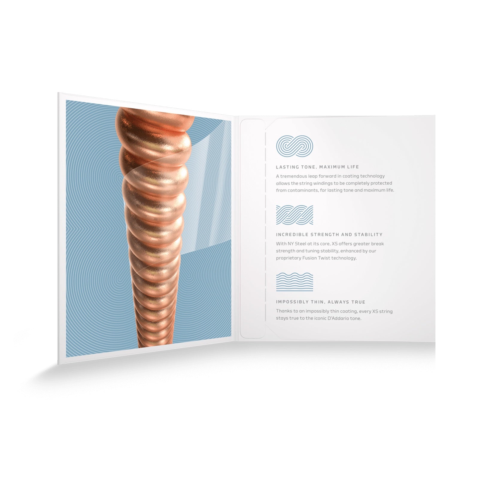 Varje enskild sträng i ett XS-set är behandlad med D'Addarios skyddande mikrocoating – en supertunn ytbehandling som effektivt stöter bort smuts och svett. XS-strängarna håller upp till fyra gånger längre än traditionella o-coatade strängar, utan att kompromissa med den ton och spelkänsla som gjort D'Addarios strängar erkända världen över.