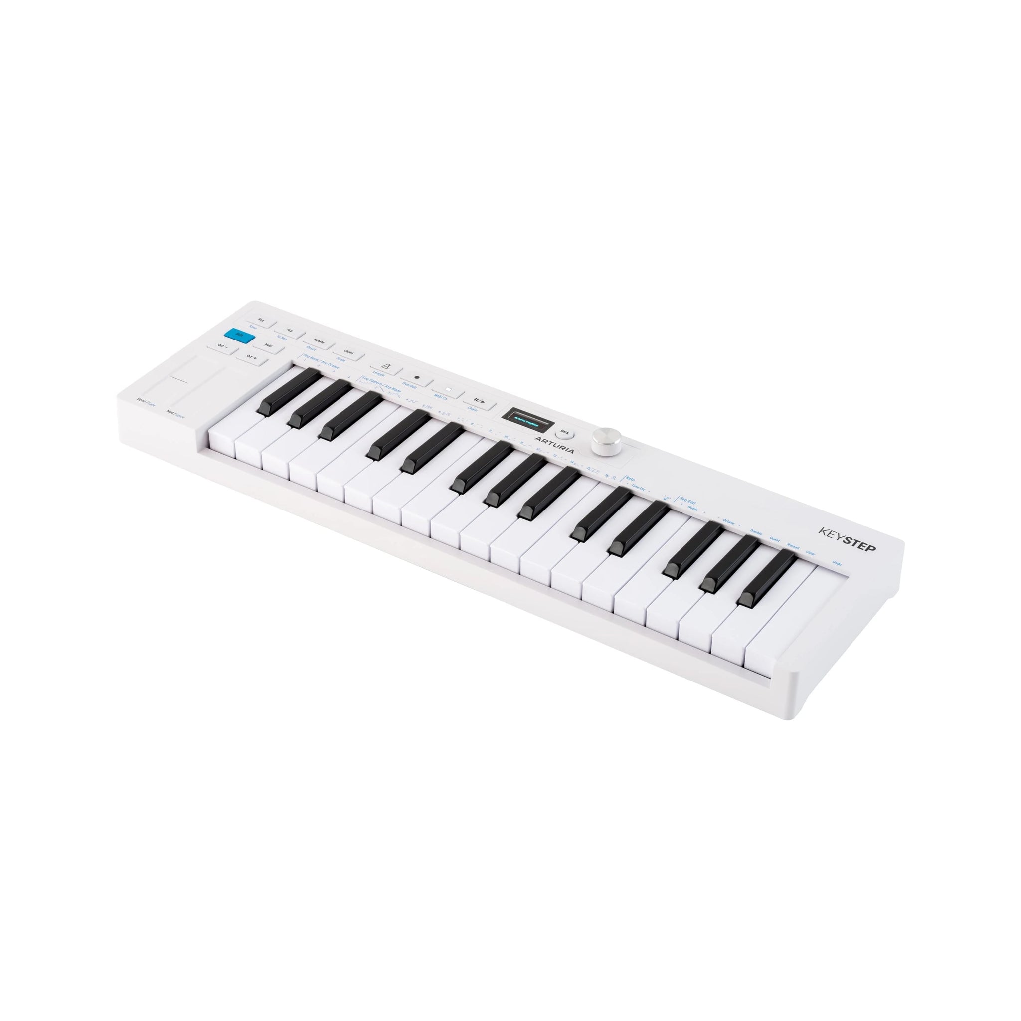Arturia KeyStep mk2 har ett 32-noters Slimkey-tangentbord med velocity och aftertouch, vilket ger ett uttrycksfullt spelande i ett kompakt format. Pitch- och modulationsstripar möjliggör intuitiv realtidskontroll, medan inbyggda ackord- och skal-lägen gör det enkelt att utforska nya musikaliska idéer.