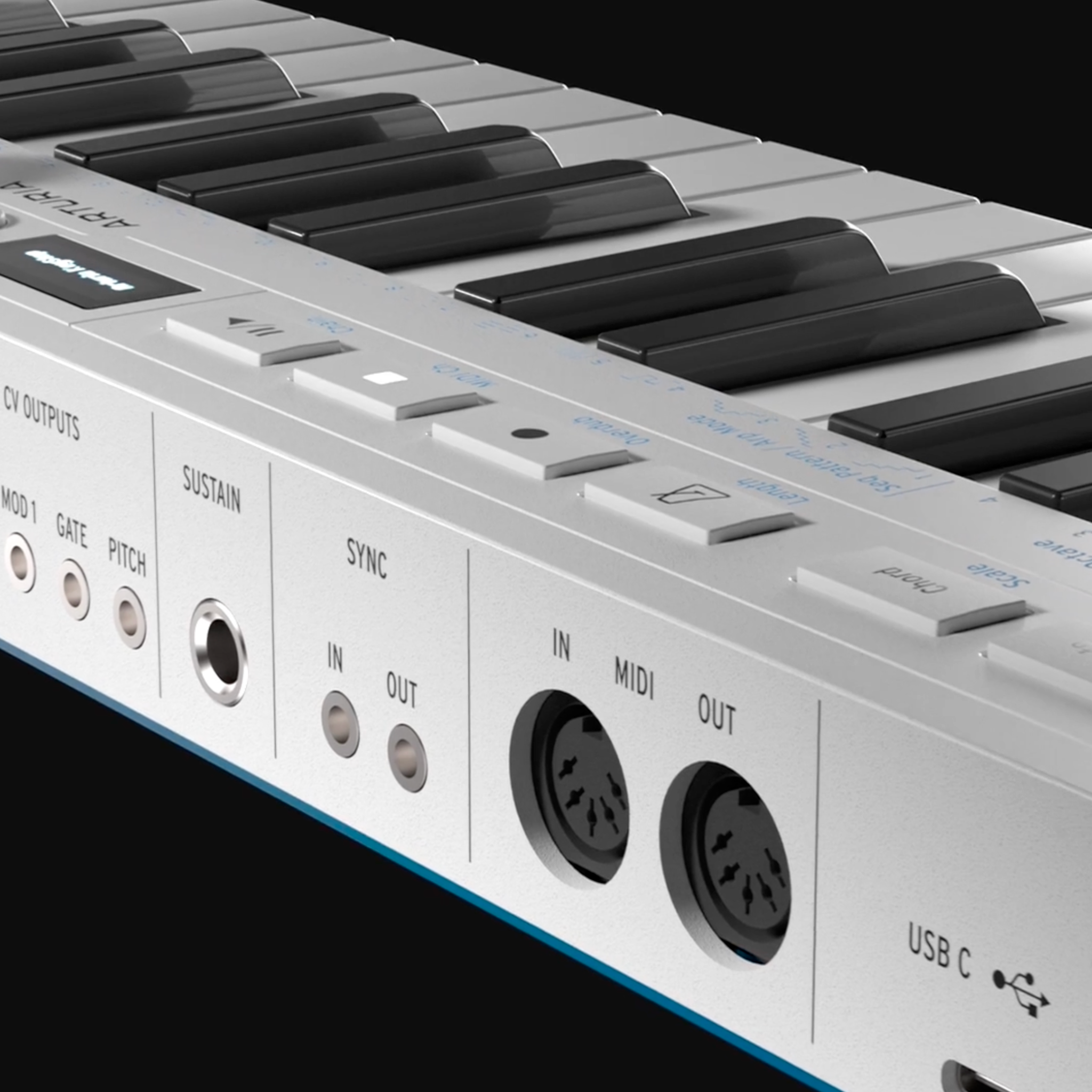 • CV/Gate-utgångar: Pitch, Gate, Mod 1, Mod 2 (assignable: velocity, aftertouch, wheel & mer)