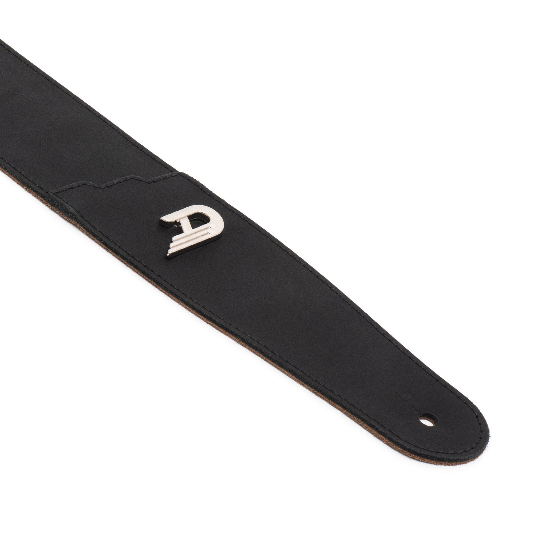 - En högkvalitativt läderaxelband med nitat metall-D-logotyp och en sträv mockainnersida.
