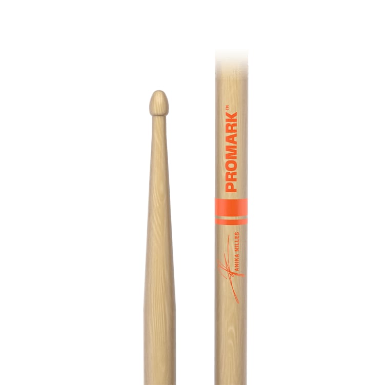 ProMark Anika Nilles trumstock är baserad på Rebound 7A men har en något grövre diameter, vilket placerar den mitt emellan 7A och 5A. Den acorn-formade toppen är något mindre, vilket ger halsen en brantare avsmalning för ökad artikulation och rekyl.