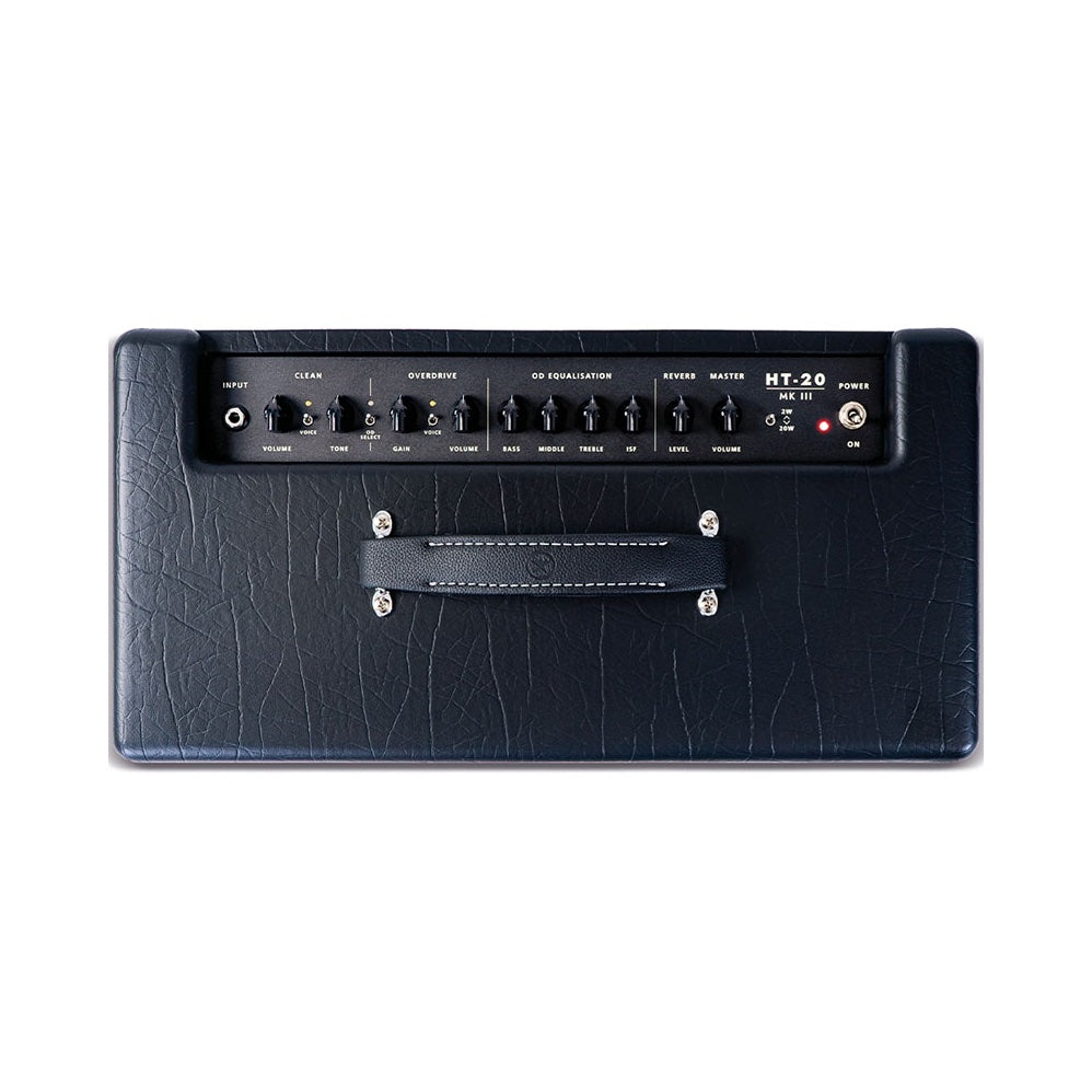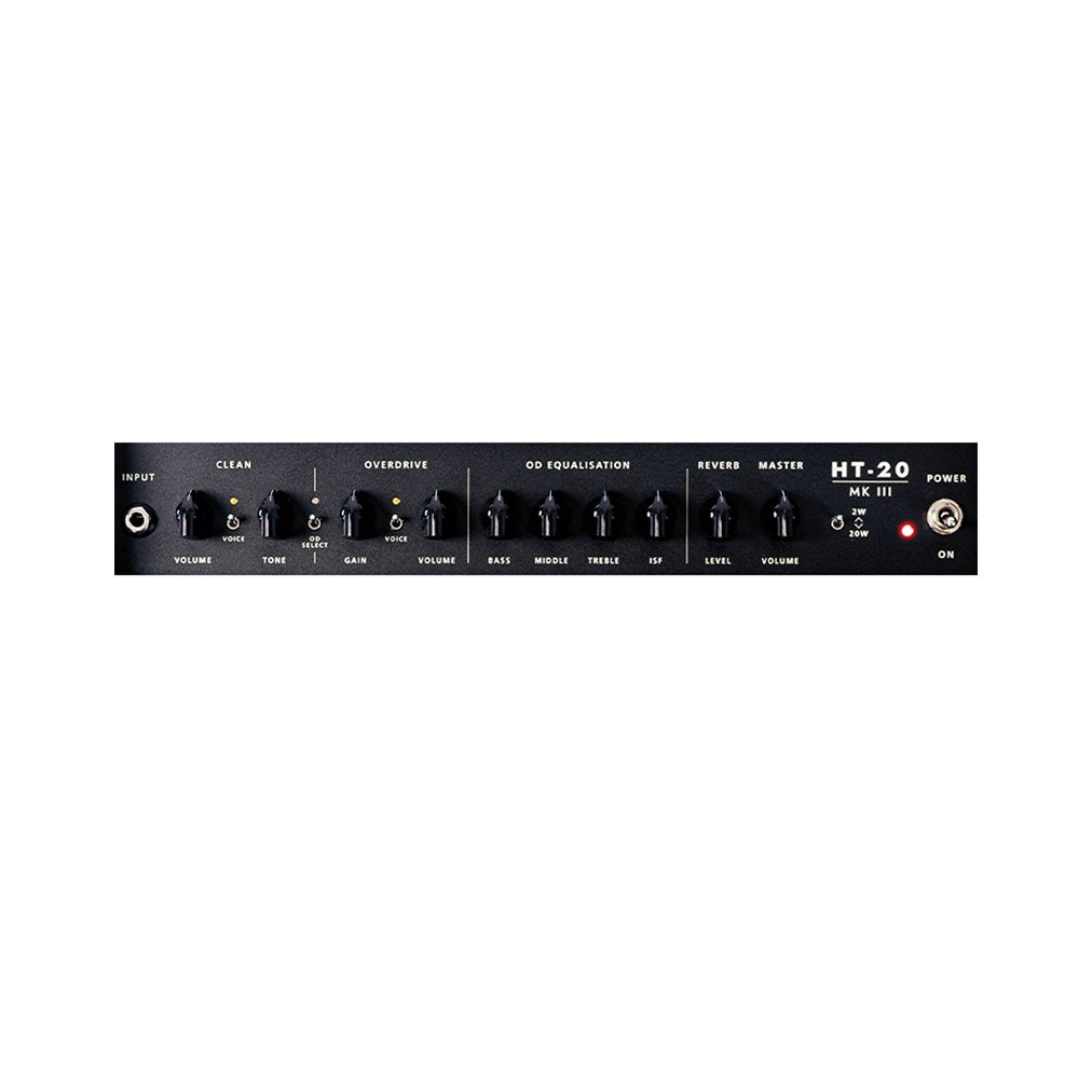 Rörcombo med effektreducering ner till 2W. HT 20R MkIII är en rörförstärkare på 20w med 2st ECC83 i preampen och 2st EL34 i slutsteget. Den har CabRig IR-baserad DSP-högtalarsimulering och USB-utgång med låg latency samt effektreducering till 2 watt.Blackstars serie av HT förstärkare är kända för att kombinera botique-sound av riktigt hög klass med modern hi-gain, allt i ett kompakt format utan kompromisser.