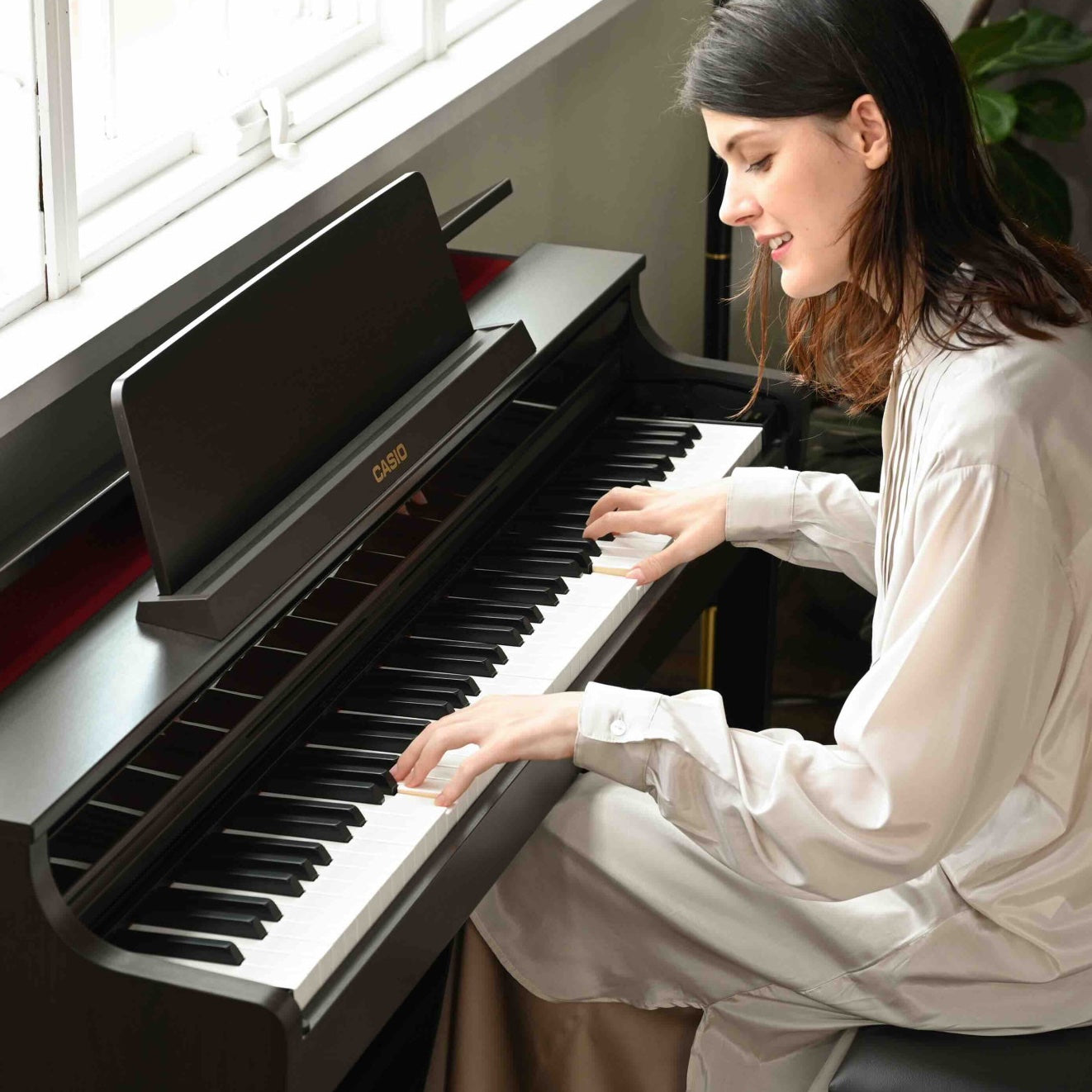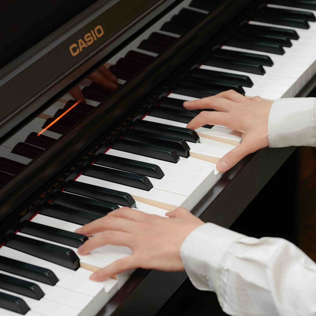 Casio Celviano AP-550 digitalpiano förenar banbrytande teknik med tidlös elegans. Med sin Smart Hybrid Hammer Action-tangentmekanik med träklaviatur, autentiska flygelljud och raffinerade design erbjuder AP-550 en inspirerande pianoupplevelse för både hem och studio.