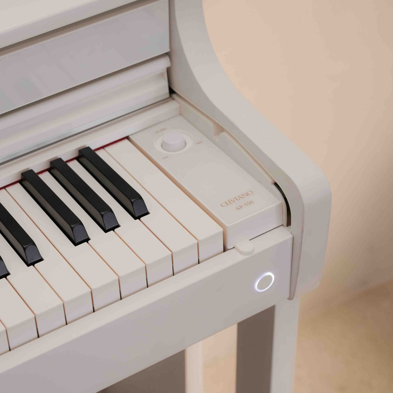 Casio Celviano AP-550 digitalpiano förenar banbrytande teknik med tidlös elegans. Med sin Smart Hybrid Hammer Action-tangentmekanik med träklaviatur, autentiska flygelljud och raffinerade design erbjuder AP-550 en inspirerande pianoupplevelse för både hem och studio.