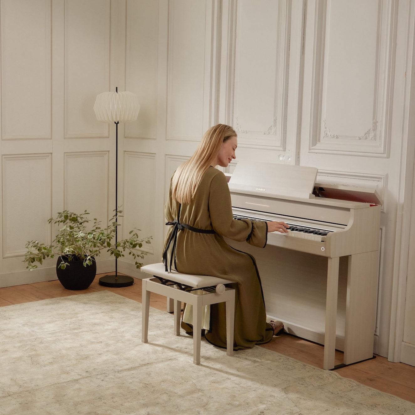 Casio Celviano AP-750 är ett digitalpiano i premiumklassen som förenar banbrytande teknik med traditionellt pianohantverk. Med sin eleganta design, Smart Hybrid Hammer Action-tangenter i trä och ett ljud utvecklat i samarbete med C. Bechstein levererar AP-750 en autentisk spelupplevelse som inspirerar till musikalisk fördjupning.