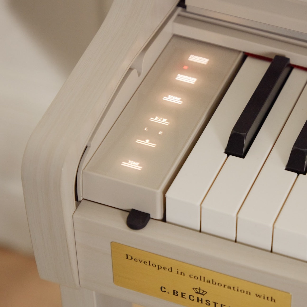 I nära samarbete med den tyska pianotillverkaren C. Bechstein har Casio utvecklat en ljudkälla som fångar själ och karaktär från den legendariska Bechstein D282-konsertflygeln. Det avancerade GrandPhonic-systemet med åtta högtalare återskapar varje detalj – från det djupa basregistret till den glittrande diskanten – med naturlig klarhet och närvaro.