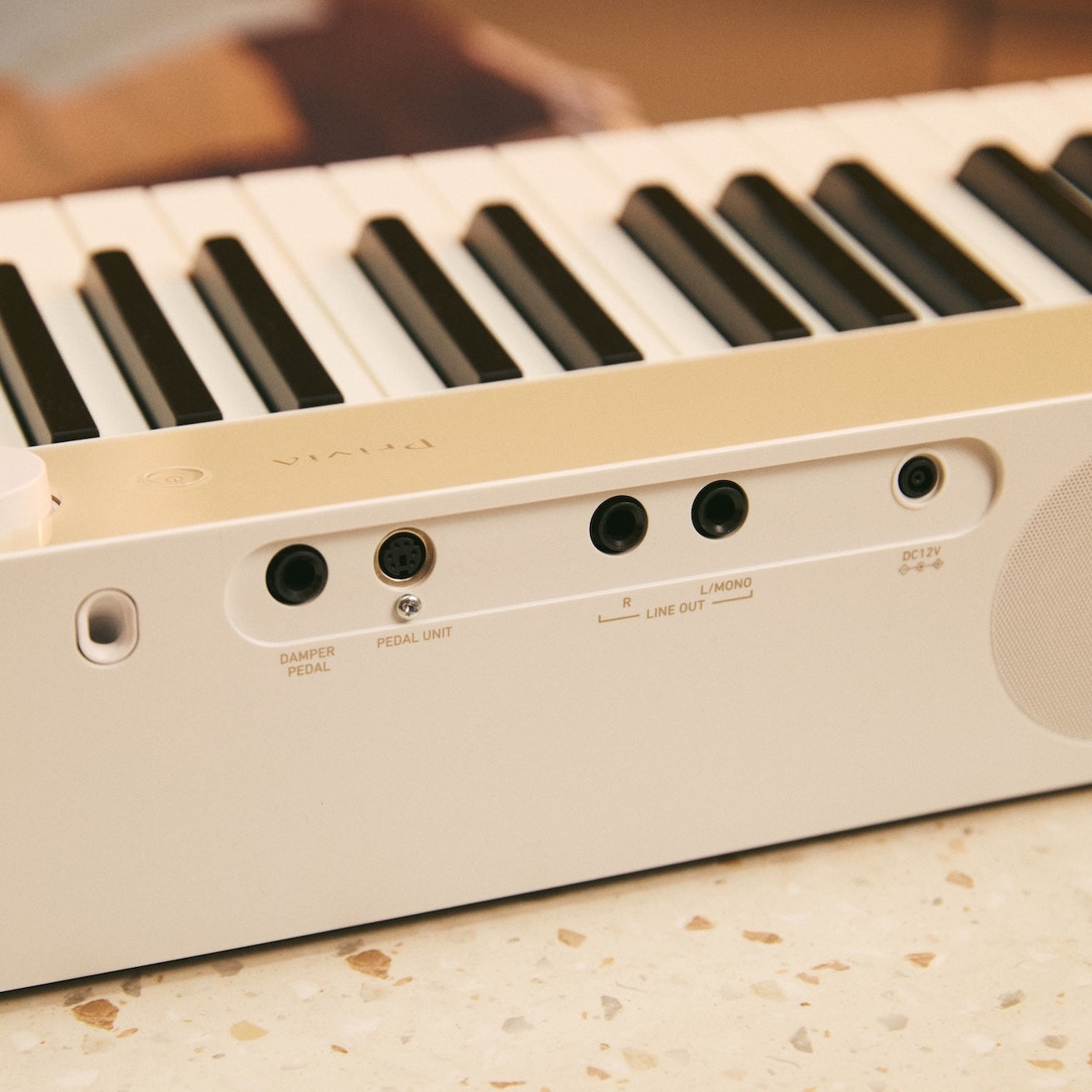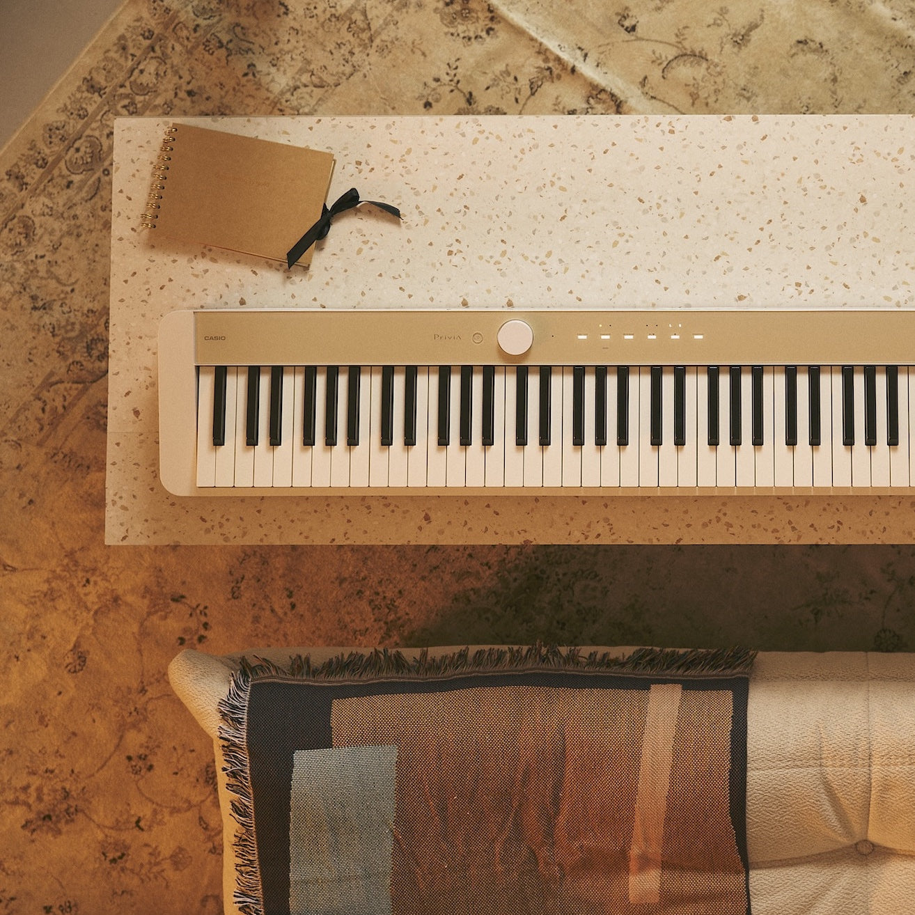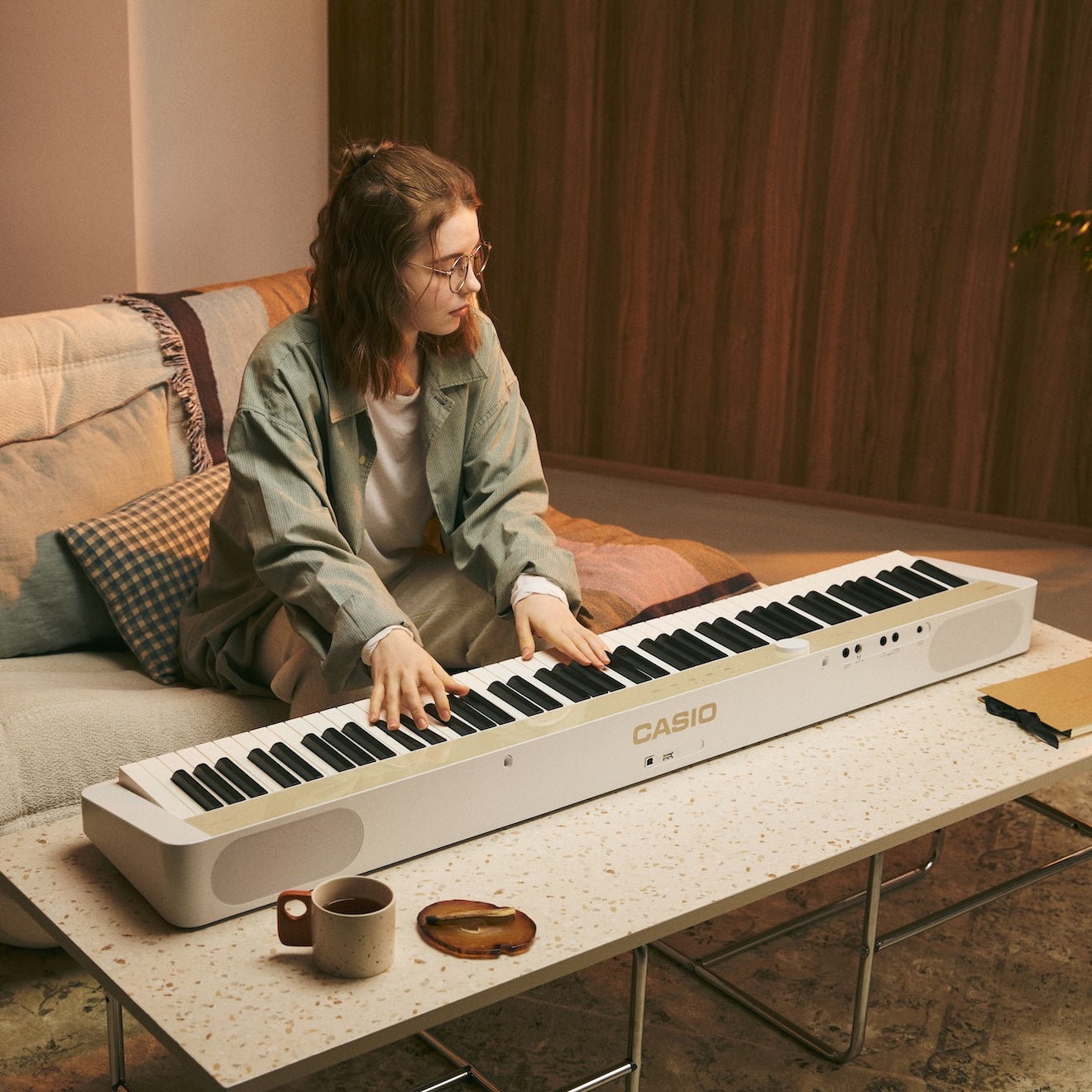 Slutresultatet blir ett mer välbalanserat ljud med oerhört stark närvaro. Casios tangenter bygger på en smart vägd hammarmekanism som ger samma känsla som en flygel, trots att den har anpassats efter det kompakta formatet. Var och en av de 88 tangenterna har sin egen avvägda känsla och timing för ljud och dämpning, vilket ytterligare förstärker den storslagna flygelkänslan.