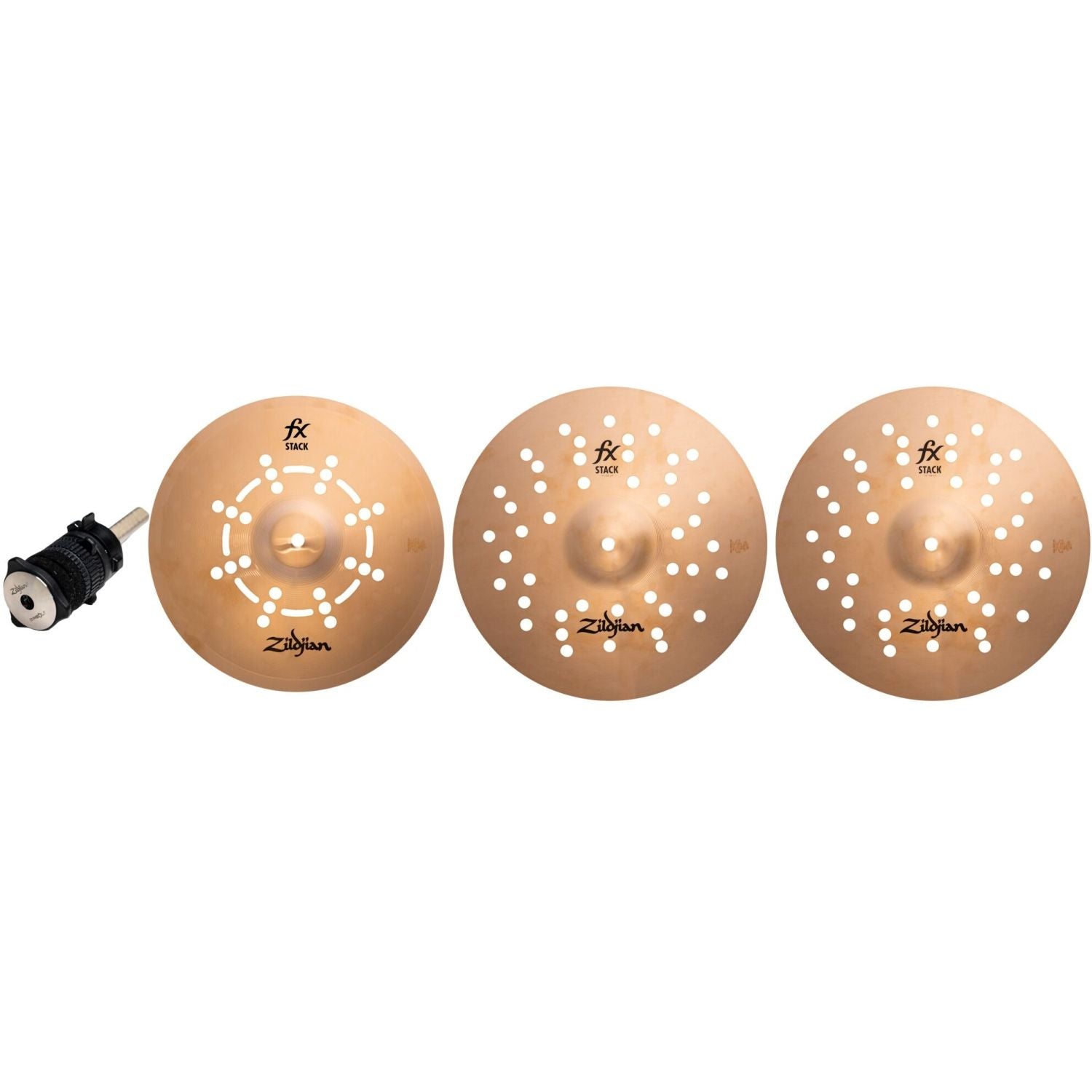 Zildjian FX Stack består av tre cymbaler där två är i samma storlek och den tredje något mindre. Detta ger flertalet olika kombinationsmöjligheter för olika spännande sounds. Du kan placera den mindre cymbalen ovanpå dom större, emellan dom eller under med resultatet att du får helt olika effekter ur din FX Stack.