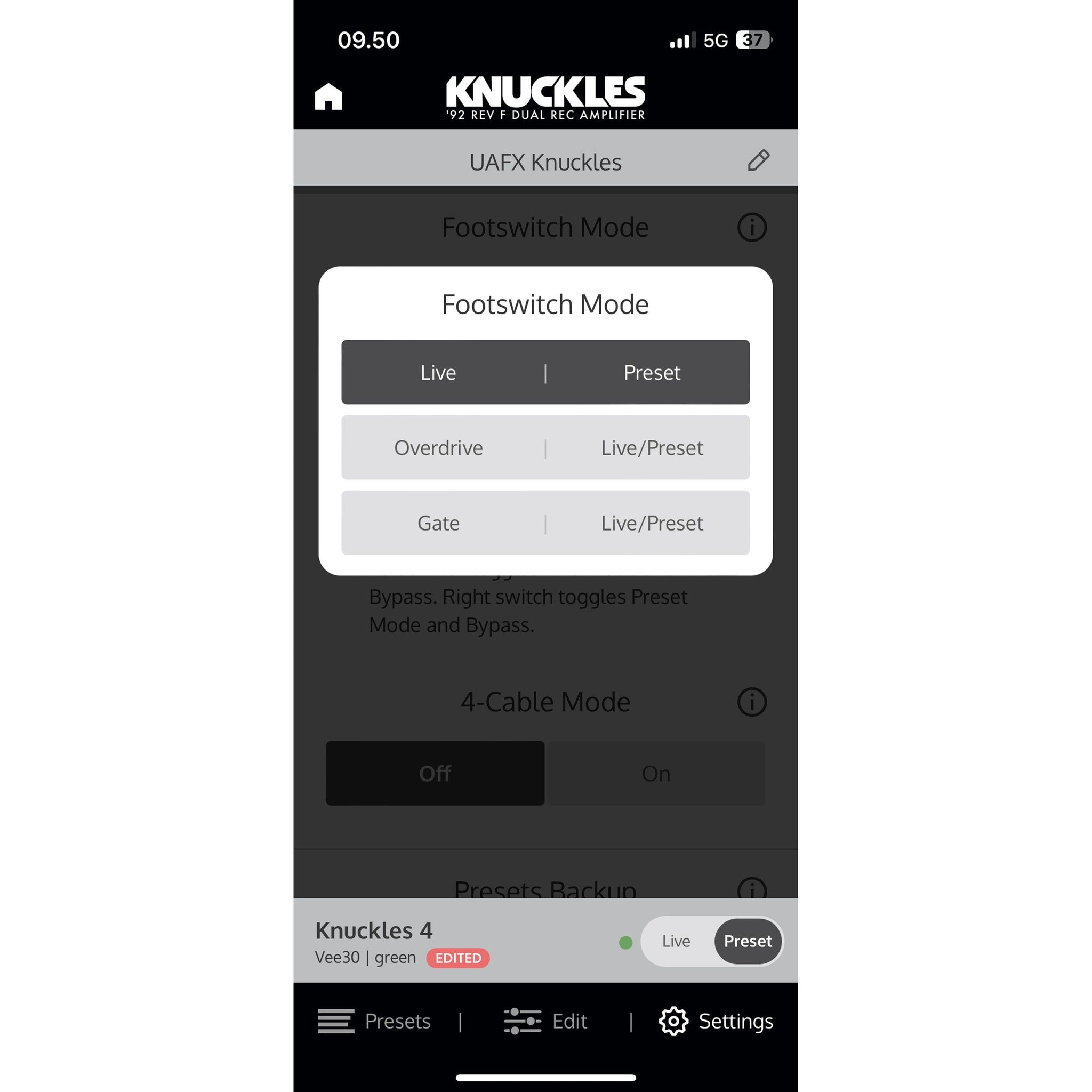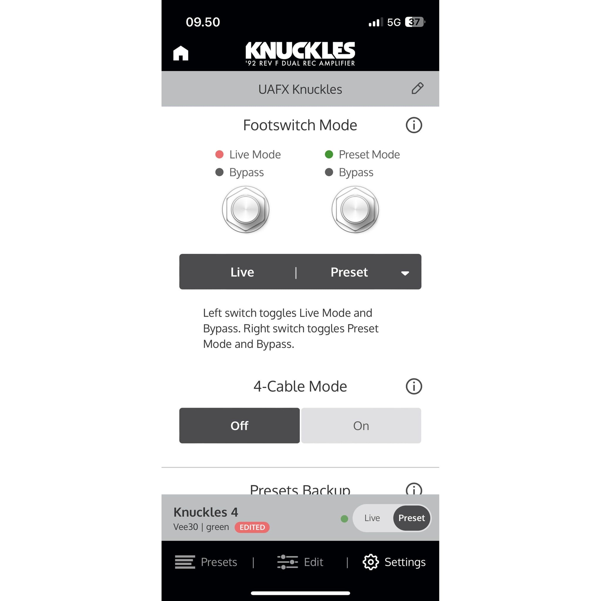 • Play presets designed by UA’s tone gurus, dual-rec specialists and artists; or customize and save your own tones in the UAFX mobile app