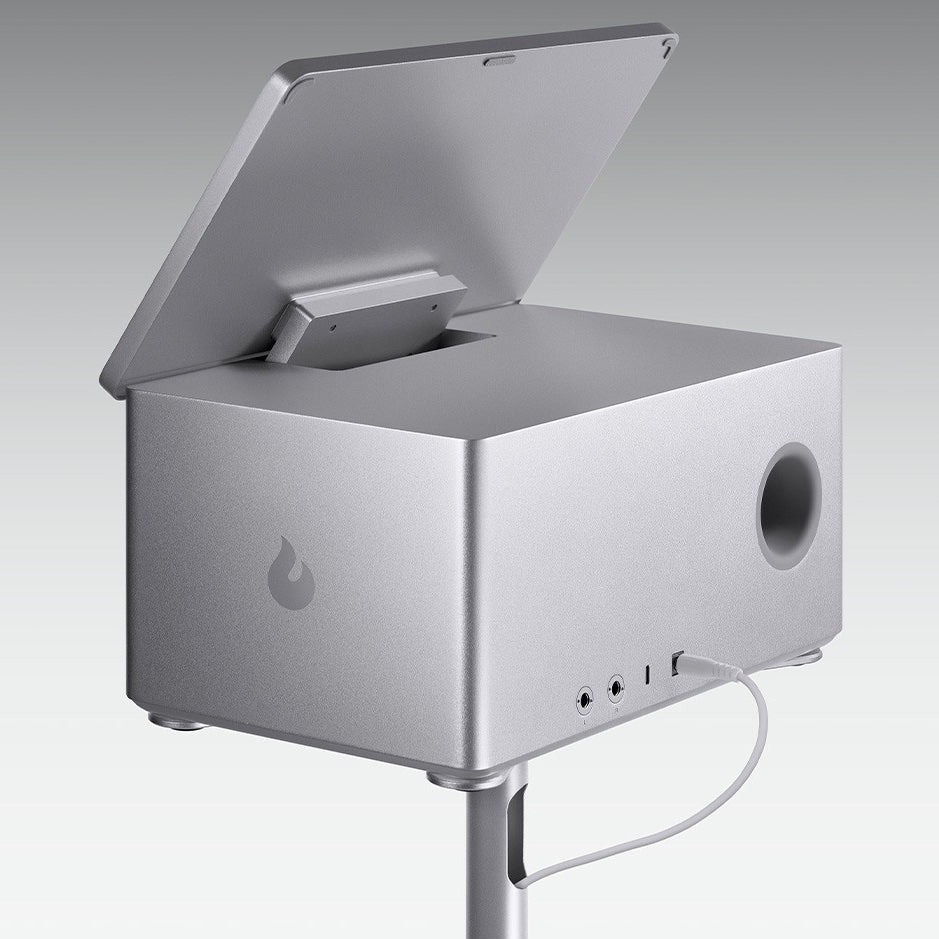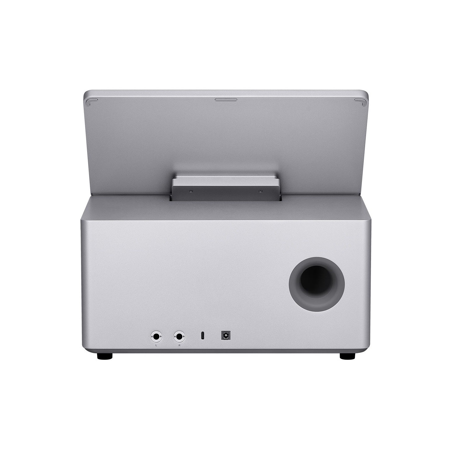 Lava Studio har ett inbyggt 2.1-ljudsystem med en subwoofer som återger djupa, fylliga lågfrekvenser och dubbla 2-tumsdiskanter för skarpa mellan- och högfrekvenser. Kombinationen ger en balanserad och levande ljudbild med studiokvalitet.