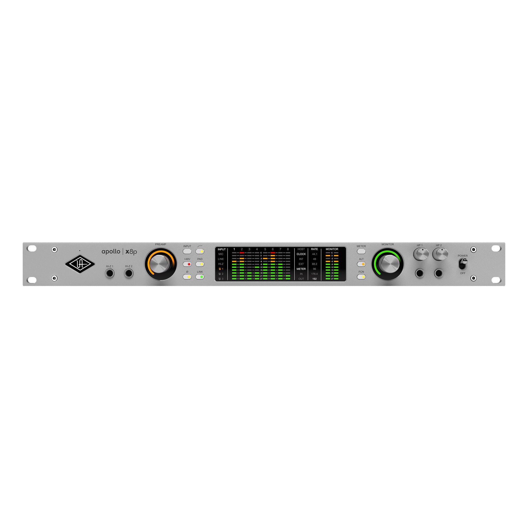 UA’s next generation of Apollo x8p interfaces is here, for producers and engineers who need highest-resolution audio conversion, eight Unison™ mic preamps, and HEXA Core DSP processing for recording and mixing large sessions with world-class UAD plug-ins from Auto-Tune, Neve, Manley, Avalon, SSL, and hundreds more.