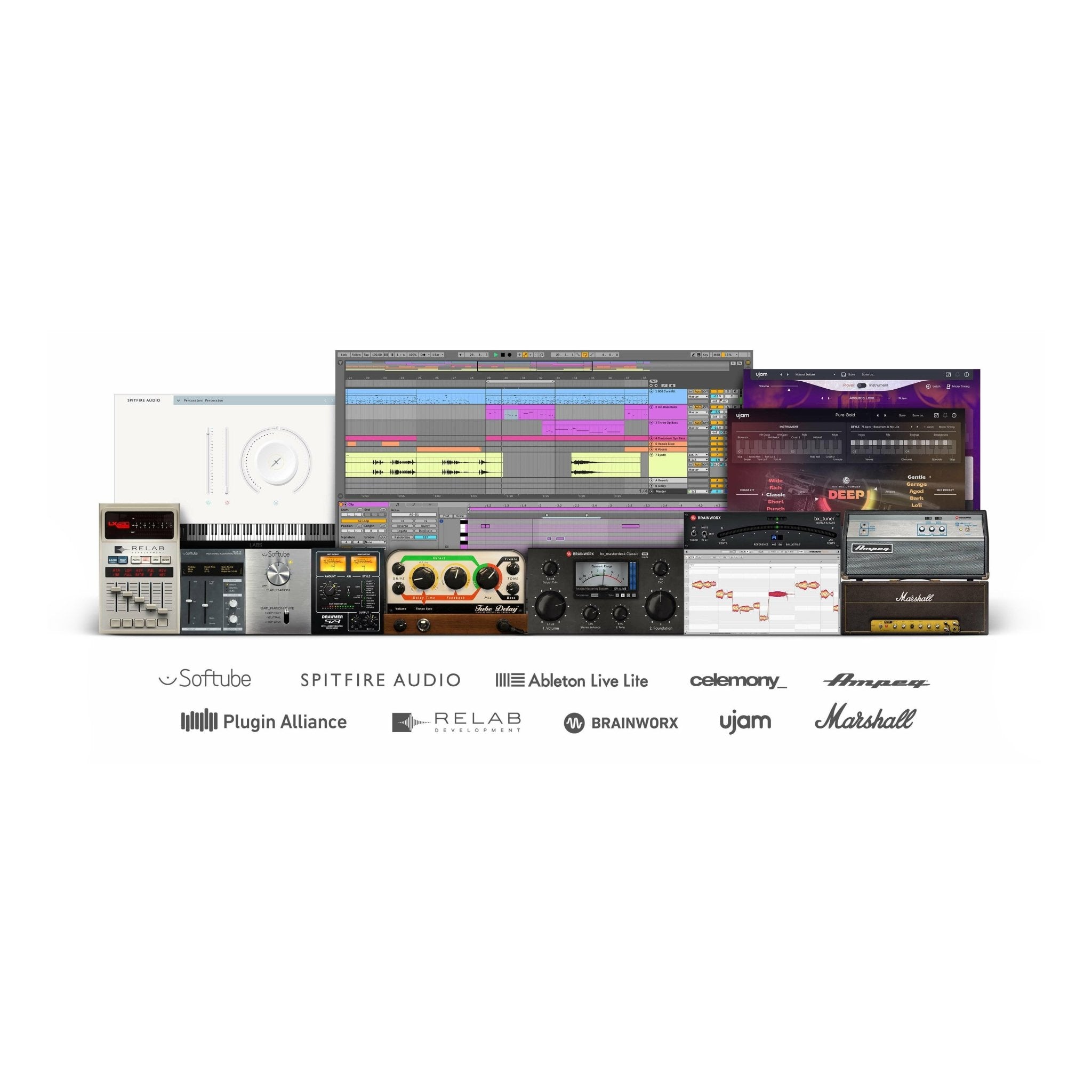 - Essential suite of audio and music software including Ableton, Melodyne, UJAM’s Virtual Drummer, Marshall, Ampeg, and more