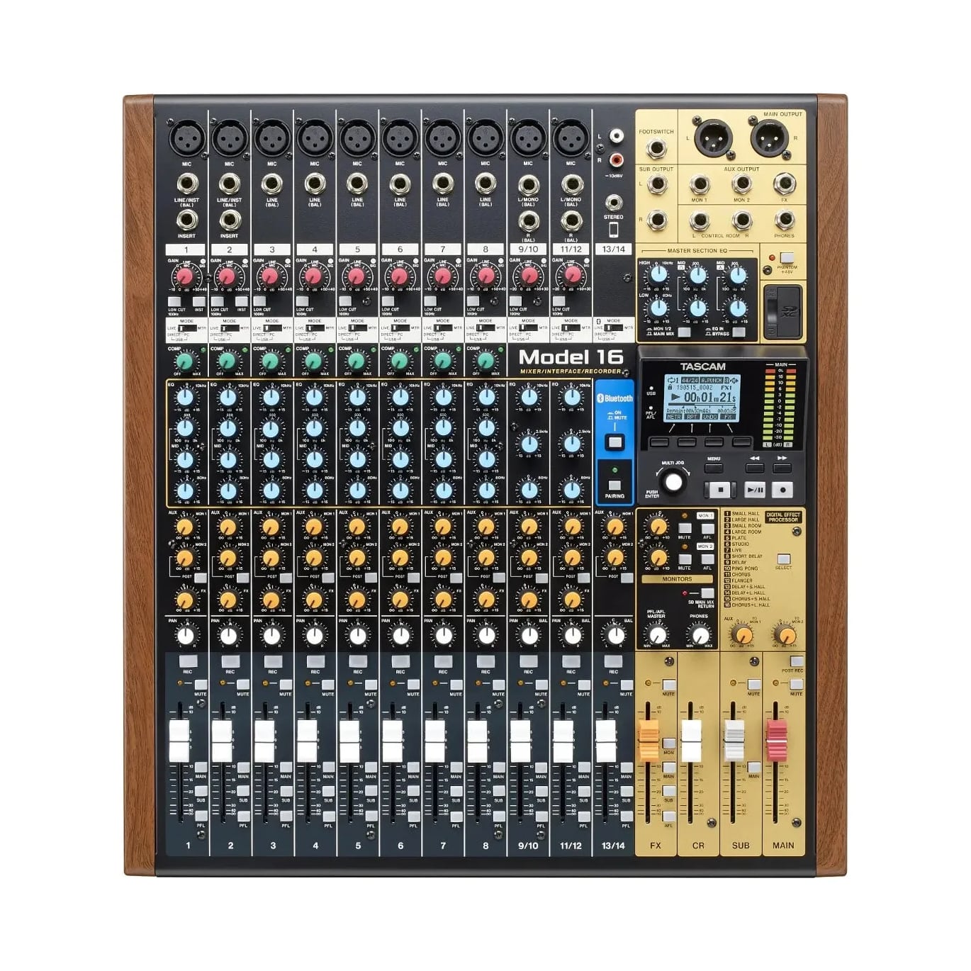 Med Tascam Model 16 får du en professionell hybridmixer som levererar både analog känsla och digital precision. Perfekt för studios, musiker och producenter som vill ha en smidig, komplett lösning för inspelning, mixning och liveproduktion.