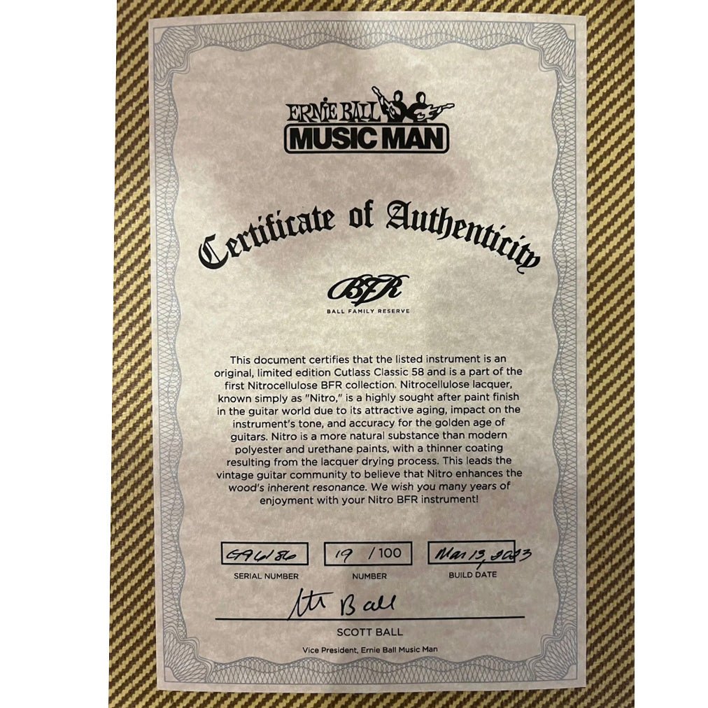 En rad saker skiljer den här specialutgåvan från standard Cutlass modellen. Halsen har en mjuk V till C-profil för den rätta vintagekänslan. Cutlass 58 har tre stycken vintagelindade single-coil pickuper med Heavy Formvar, 0.42 AWG kabel och Alnico V magneter. Många 50-talspickuper testades och Music Man har lyckats reproducera en varm men ändå skimrande ton med fast botten och kristallklar topp. Cutlass Classic har inte buffrad utgång/silent circuit utan elektroniken är helt passiv.
