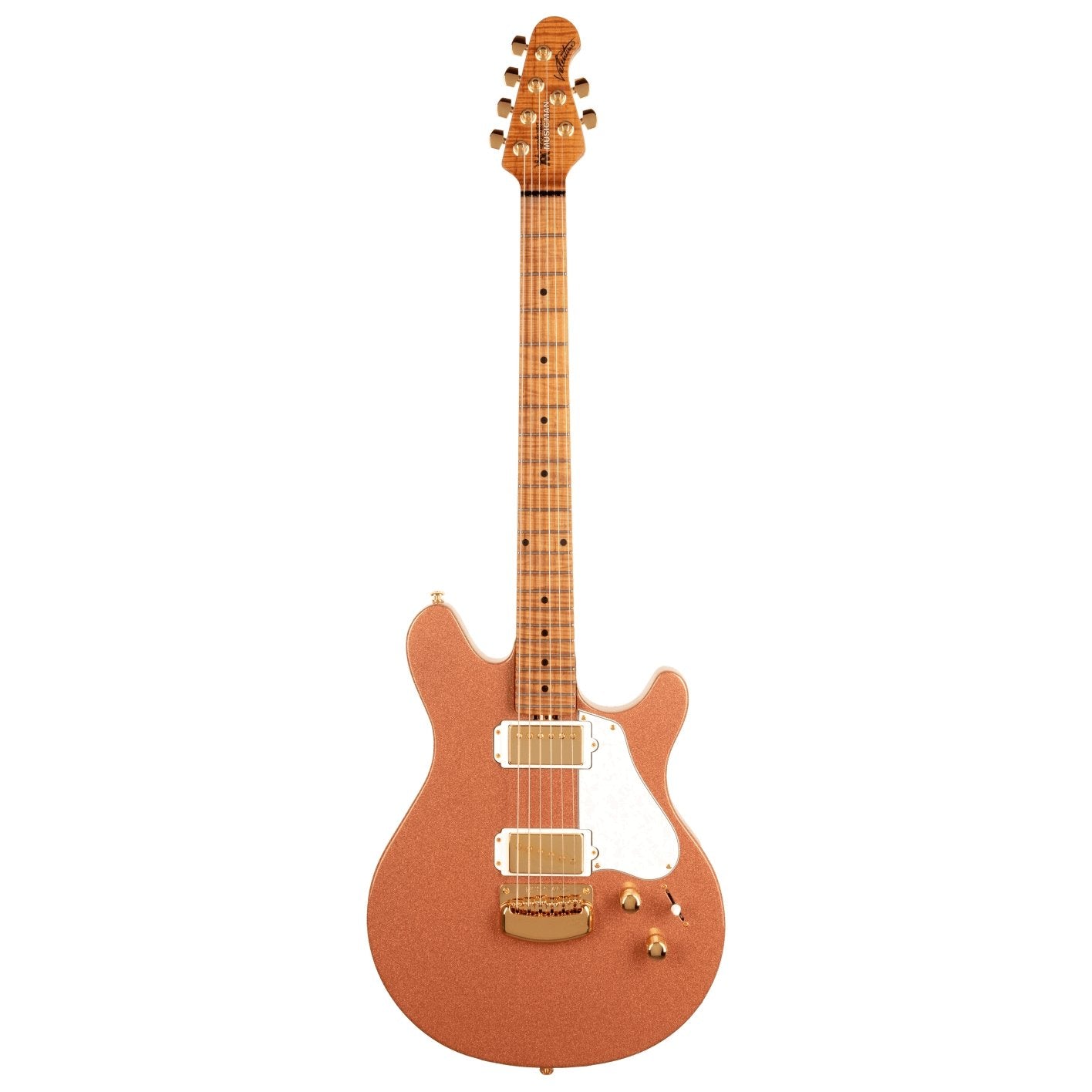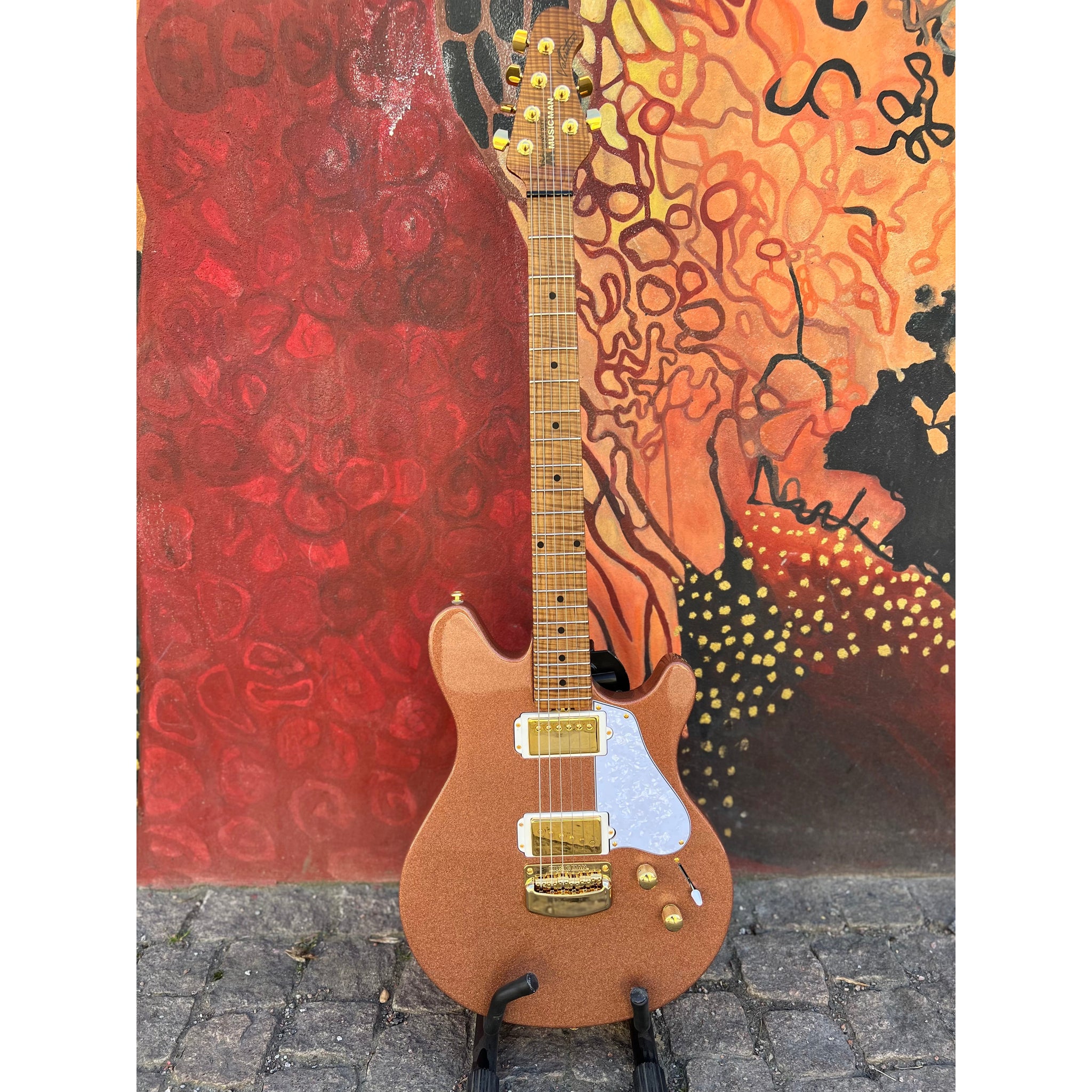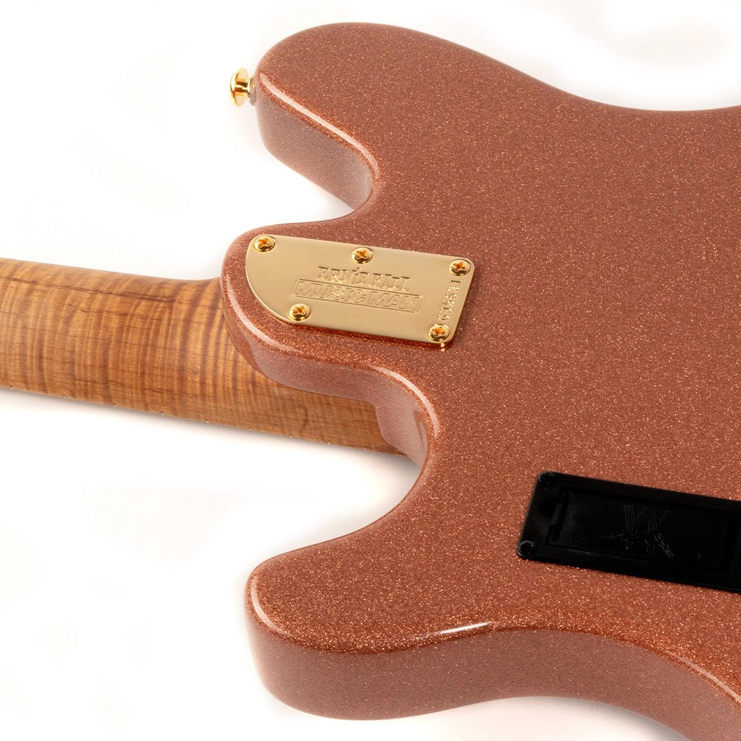 - Pickups: Music Man SH Customlindad Single coil (stall), Music Man Humbucker (hals)