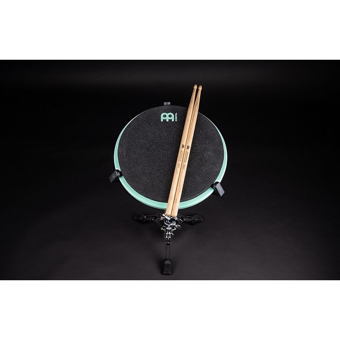 Den solida kompositbasen är halkfri och vadderad på undersidan, vilket gör att övningsplattan ligger stabilt på alla typer av ytor. Den är även utrustad med en 8 mm gängad insats för enkel montering på cymbalstativ.