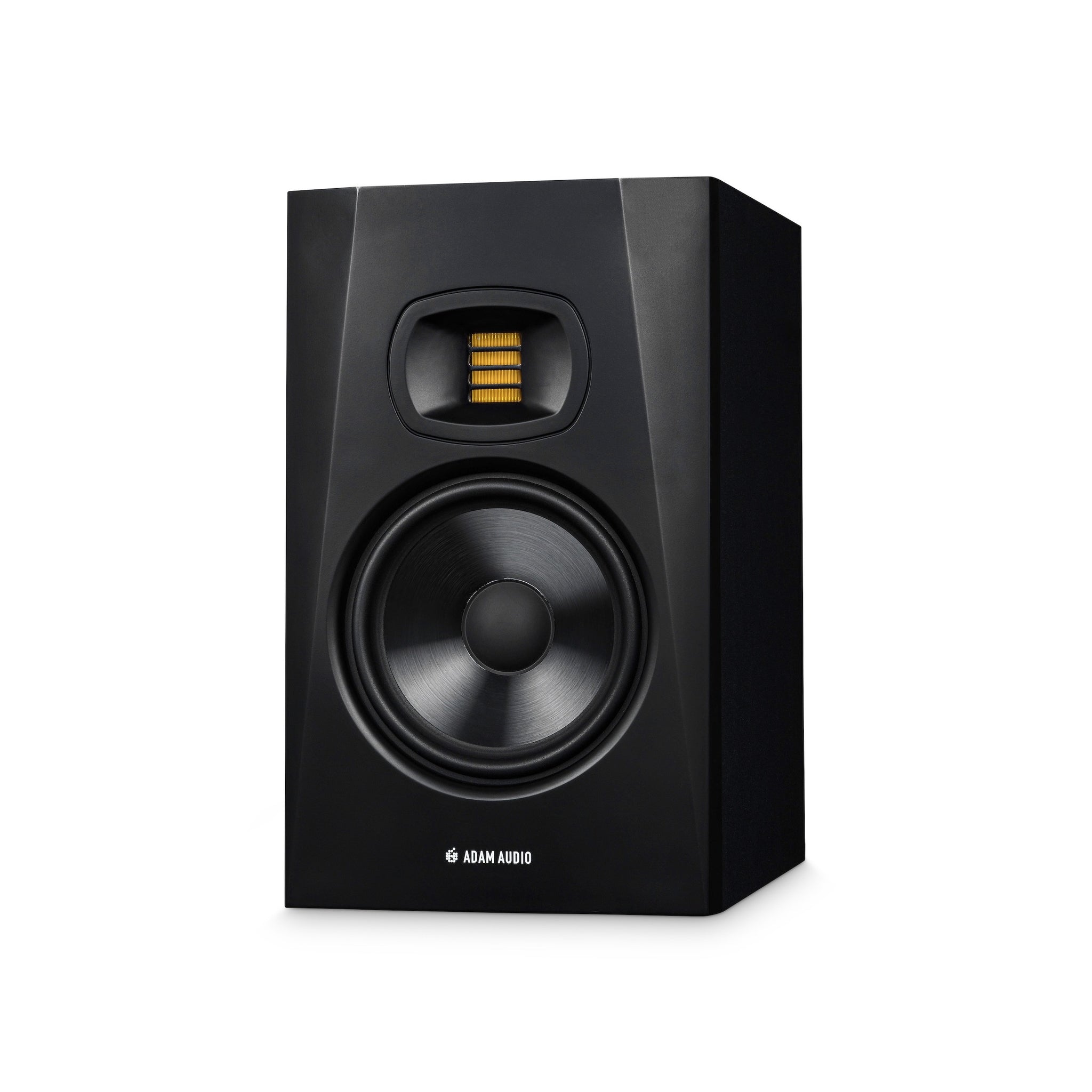 T7V är utrustad med en 7-tums bas som ger ett basfrekvenssvar ända ner till 39 Hz, medan U-ART-diskantens membran levererar ett klart och utsträckt högfrekvenssvar upp till 25 kHz – något som nästan aldrig förekommer i monitorer i denna prisklass. U-ART-diskanten är monterad i en precisionsvågledare med samma spridningskontroll som High Frequency Propagation (HPS)-vågledaren som används i ADAM Audios flaggskeppsserie S. Vågledarens mycket jämna spridning av höga frekvenser ger ett otroligt brett “sweet spot” som gör att du slipper vara låst vid en fast mixposition när du arbetar.