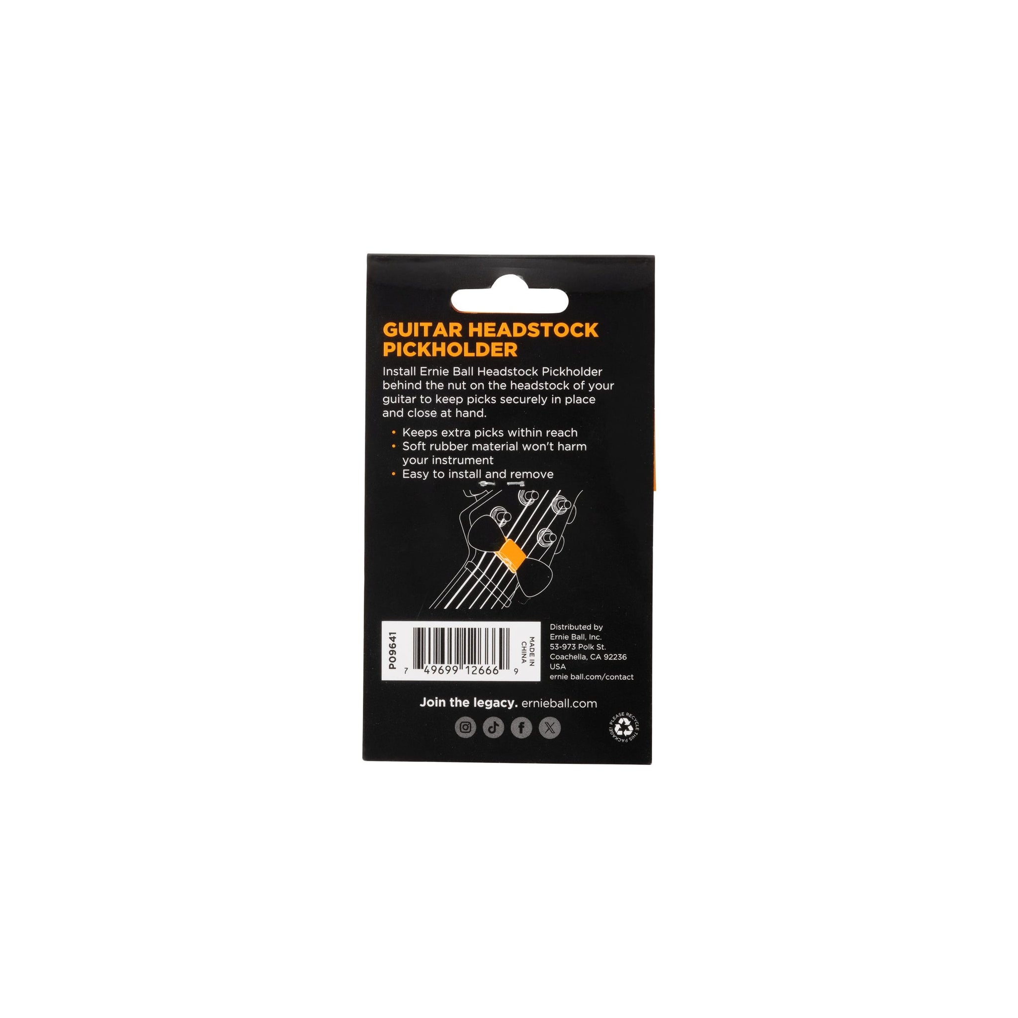 Plektrumhållare i gummi, plats för två plektrum, enkel att sätta dit och att ta bort.