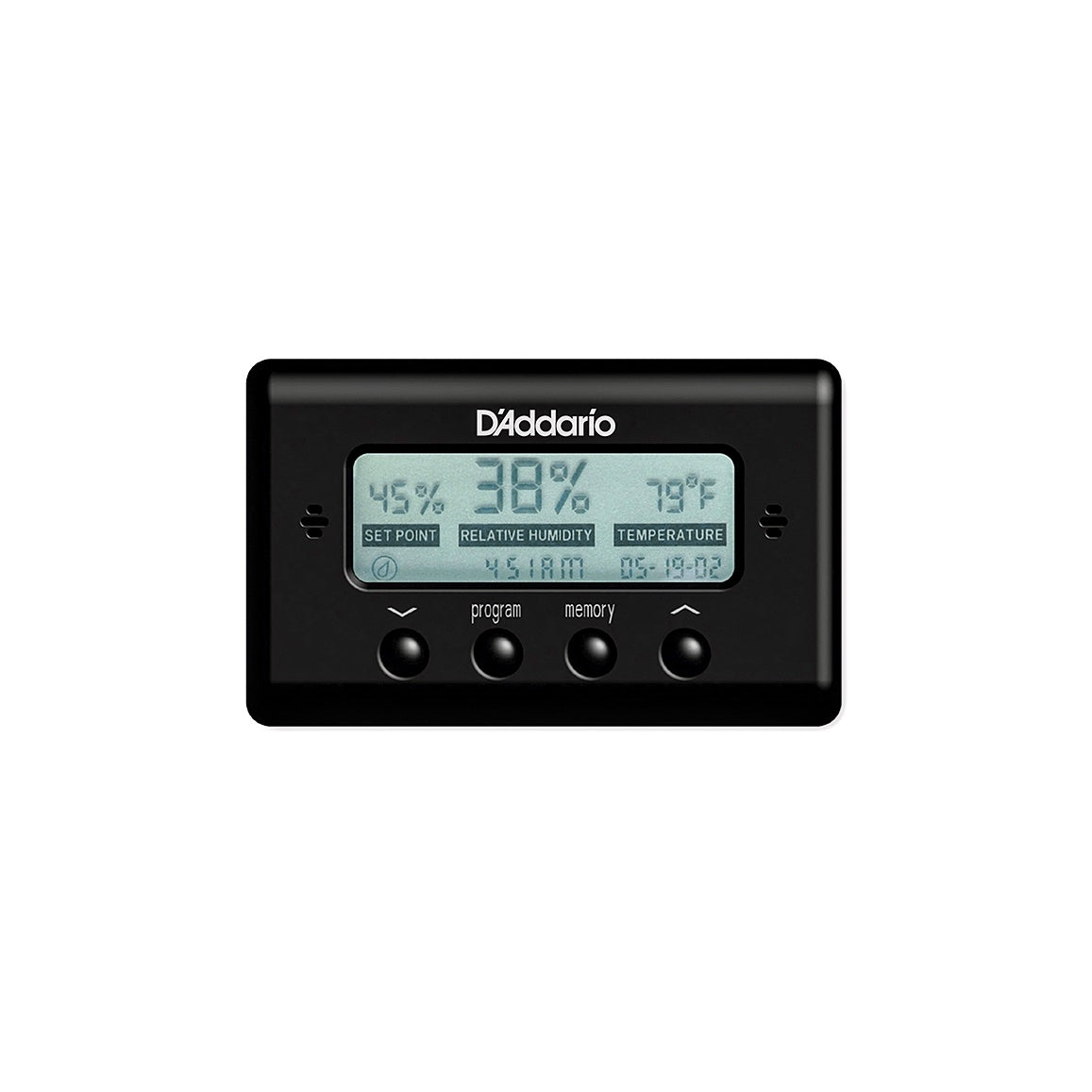 HTS har en programmerbara set point såväl som att du kan lagra datum/tid för tillfällen med högsta respektive lägsta temperatur och luftfuktighet som instrumentet utsatts för. För optimalt skydd och kontroll av ditt instrument bör du förvara denna sensor tillsammans med någon av D'Addarios luftfuktare och din gitarr i ett case.