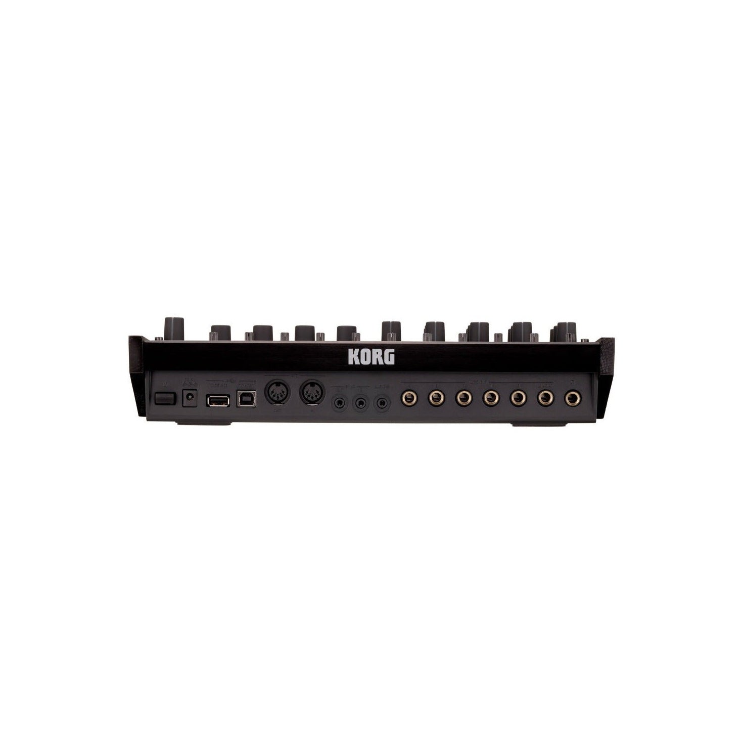 - Anslutningar: Hörlursutgång, L/MONO, R, AUDIO OUT 1–4, SYNC IN/OUT, AUDIO IN, MIDI IN/OUT, USB A (TO DEVICE), USB B (TO HOST)