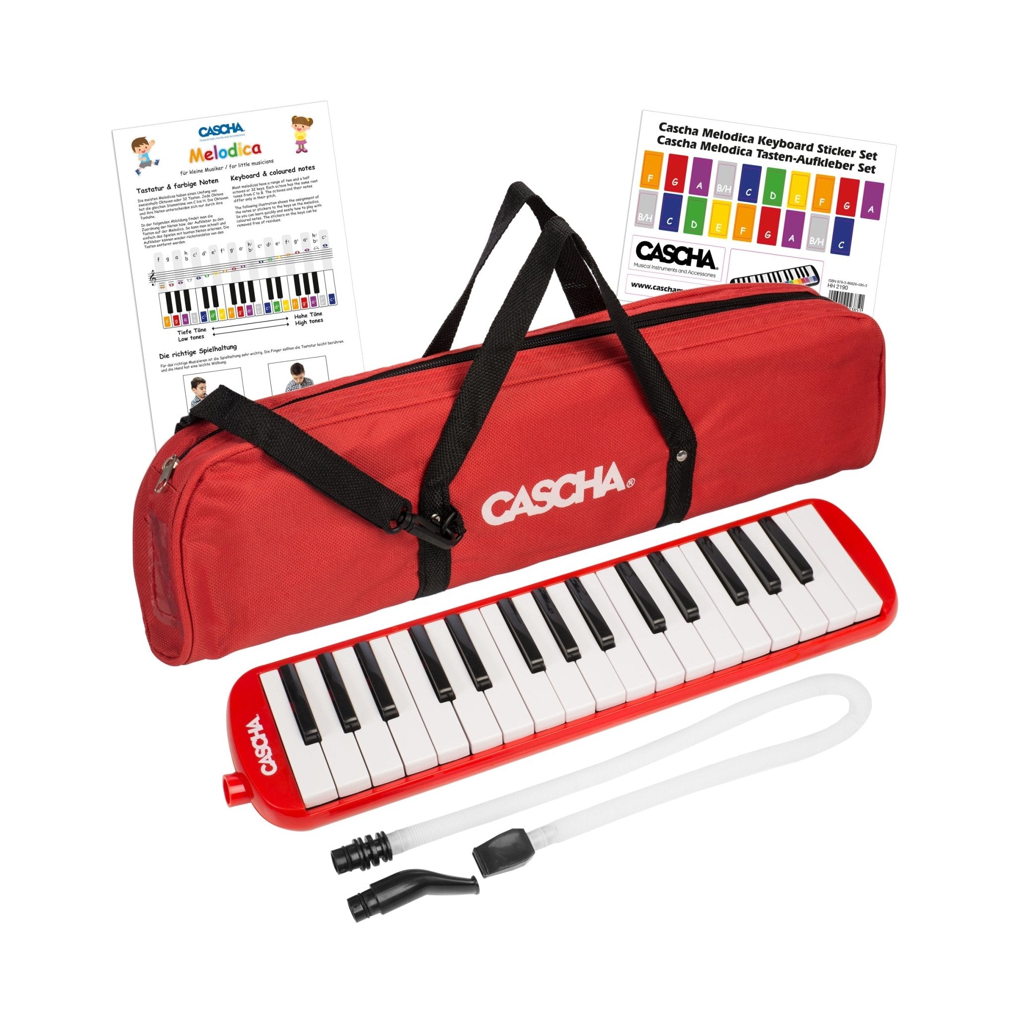 Melodikan får sin ton genom att du blåser luft in i instrumentet och spelar på tangenterna. Tonen påminner om ett dragspel. Cascha Melodika kommer med färgade klistermärken för att fästa på tangenterna. Varje ton får sin egna färg. Cascha HH 2059 är inte bara för barn utan också ett instrument som är kul för vuxna. Detta är en 32 tangenters melodika som även är lämplig i musikundervisning.
