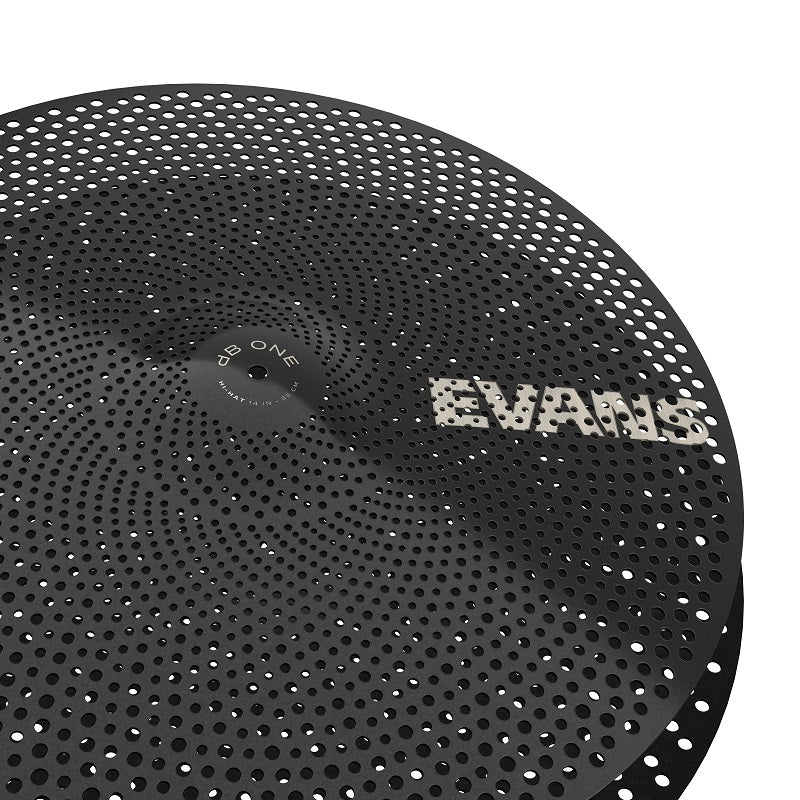 De första cymbalerna med Evans logo och dBalance-teknik. dB ONE cymbaler har ett spiralperforerat volymreduceringssystem, stansat i en nanobelagd rostfri legeringsyta. Detta tillvägagångssätt för dämpning uppnår ett ljud och resonans som är lika artikulerat som många fullvolymset, men med 80 % mindre volym. Evans dB ONE cymbaler med låg volym låter dig spela och öva naturligt, när och var du vill.