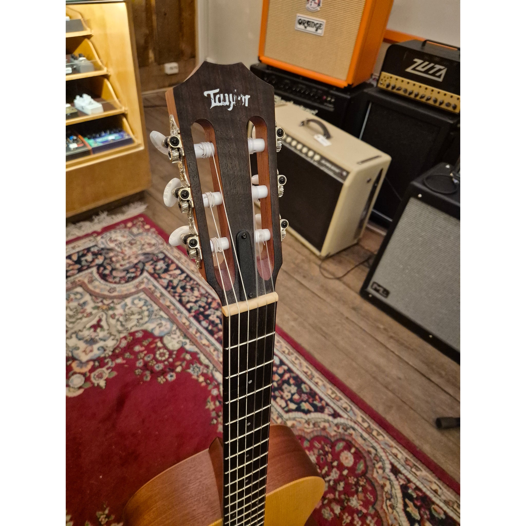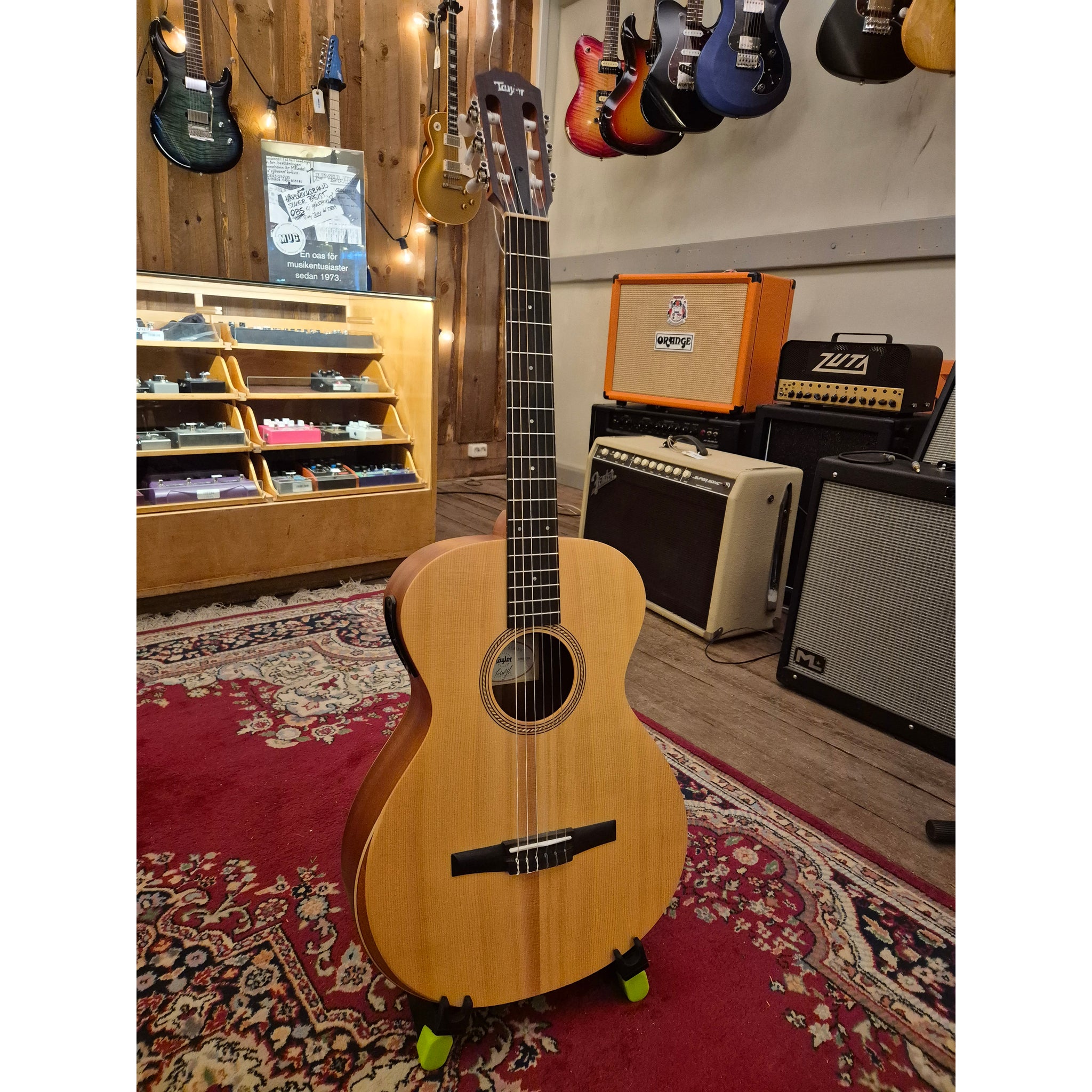 Begagnad nylonsträngad Taylor i fint bruksskick med väska.