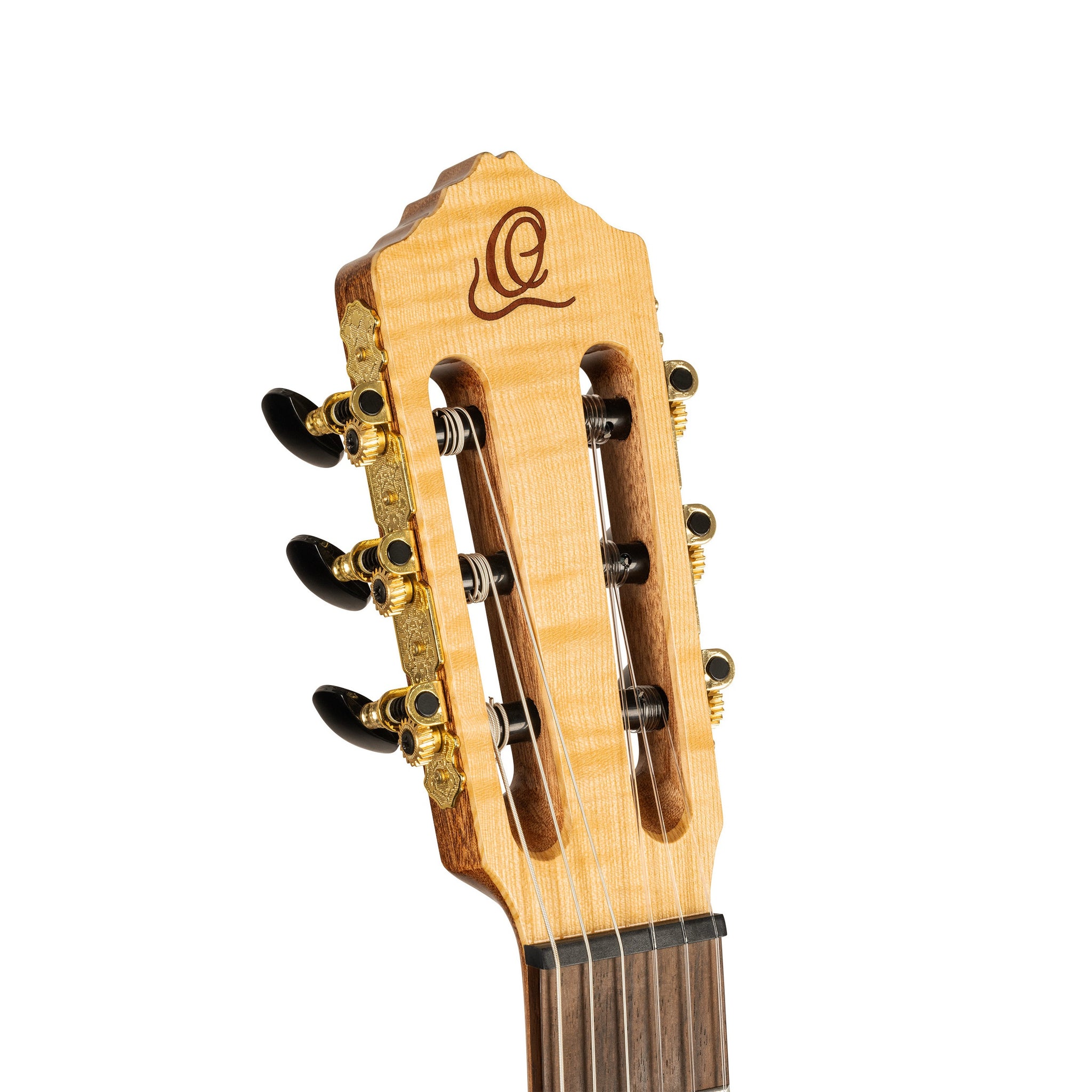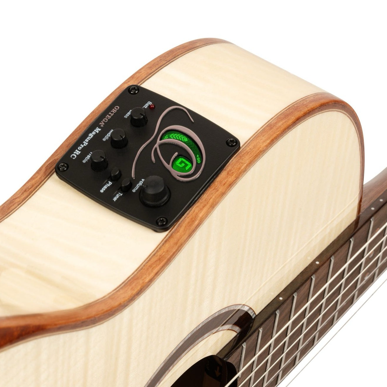 Gitarren är utrustad med Ortega MagusPro/G-RC, ett modernt och uppladdningsbart preampsystem med USB-C-anslutning. Endast 10 minuters laddning ger upp till 15 timmars speltid, vilket gör instrumentet perfekt för långa konserter och turnéer.