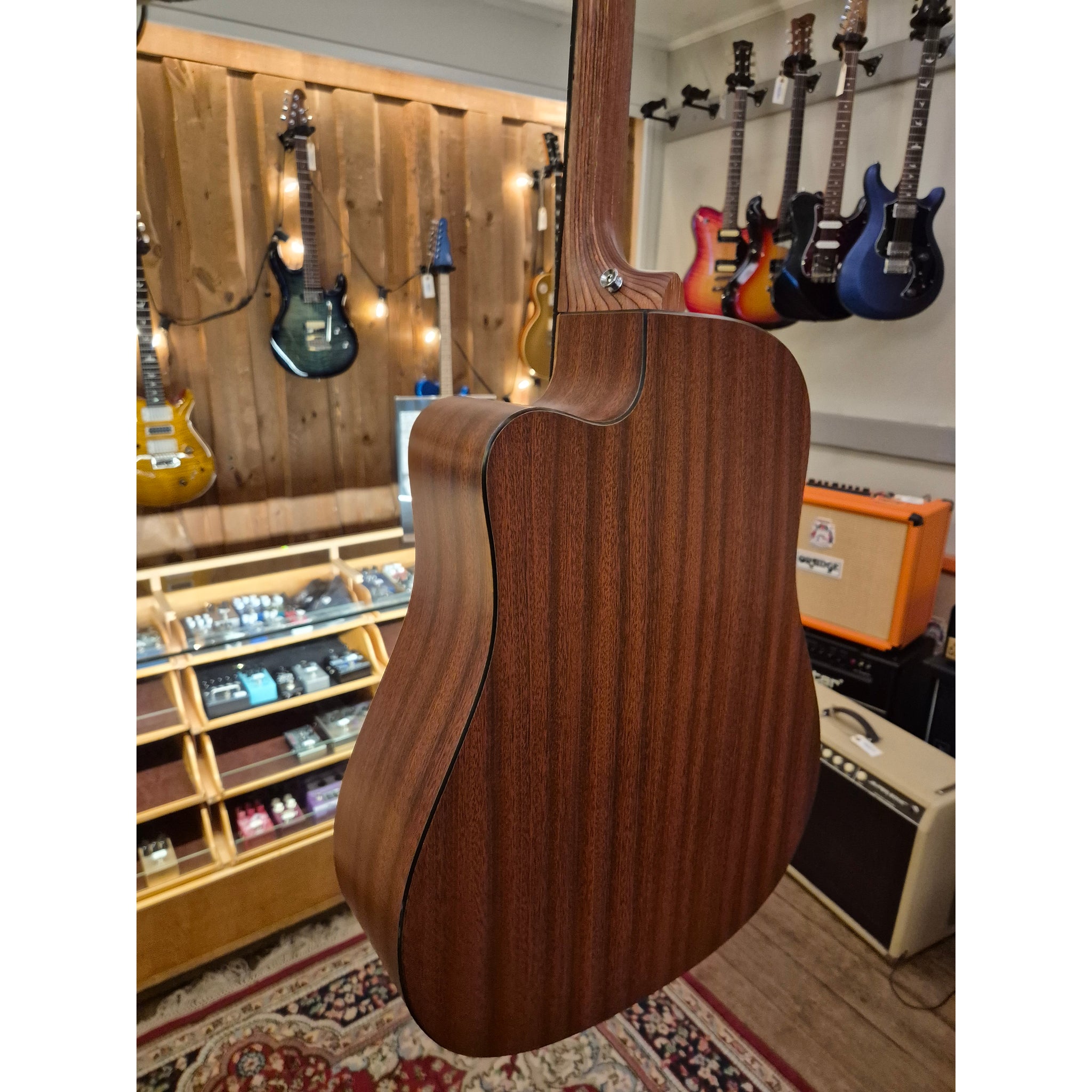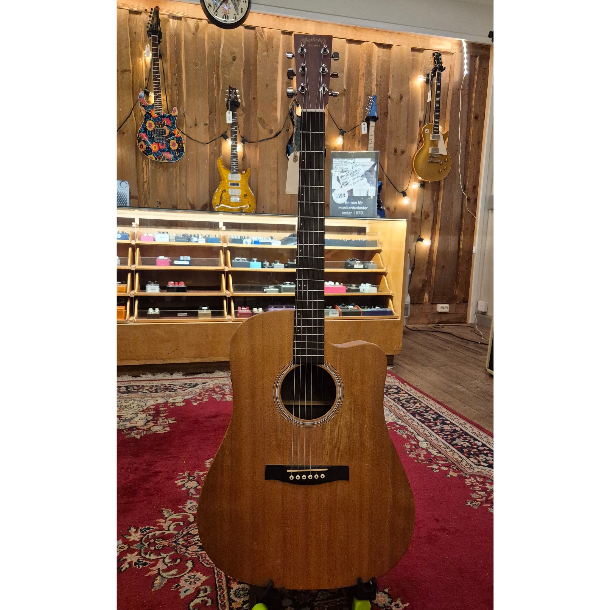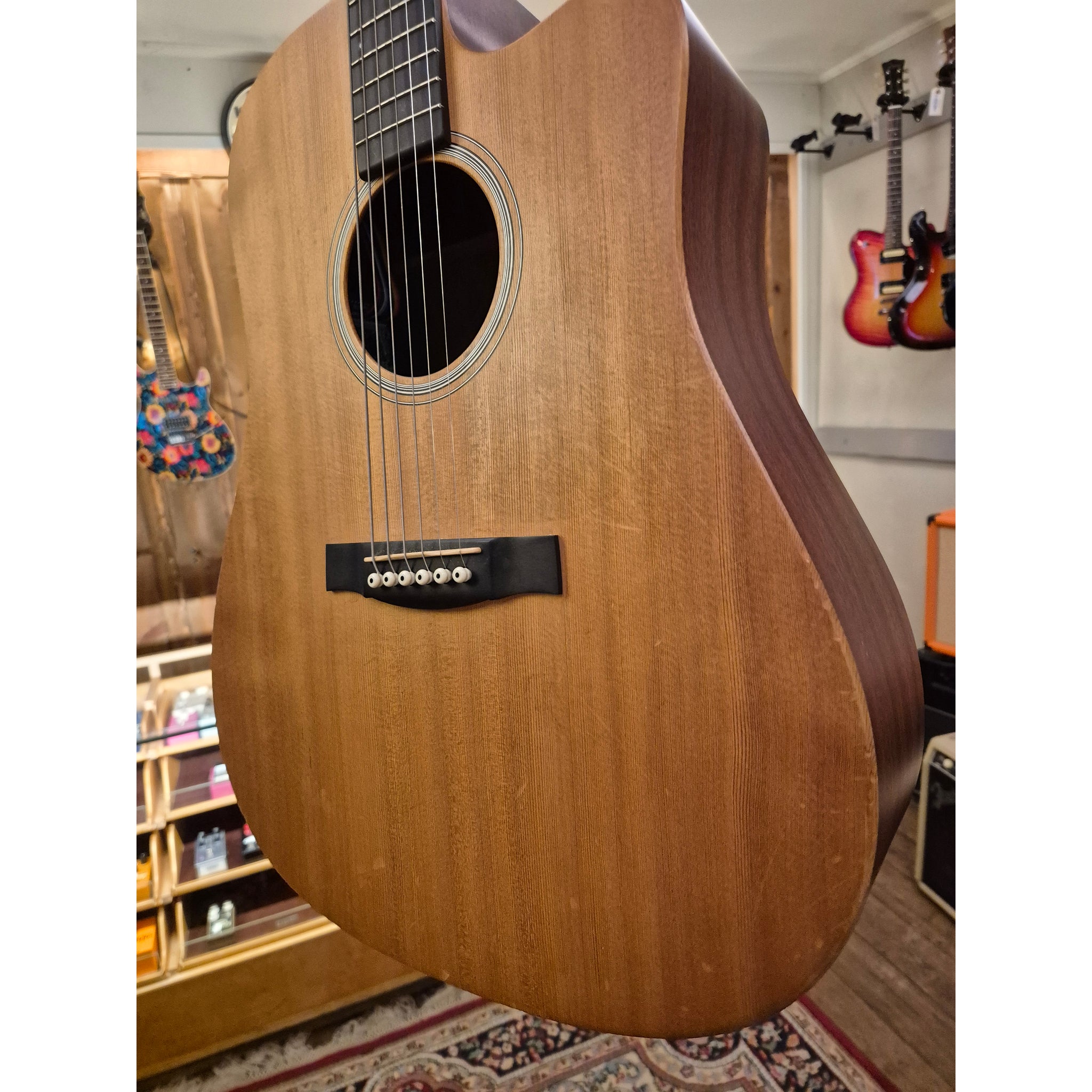Halsen är byggd i Rust Birch Laminate för ökad stabilitet och har Martin Performing Artist-profil med High-Performance Taper. Kombinationen ger en snabb och bekväm spelkänsla oavsett om du spelar ackord eller melodiska linjer.