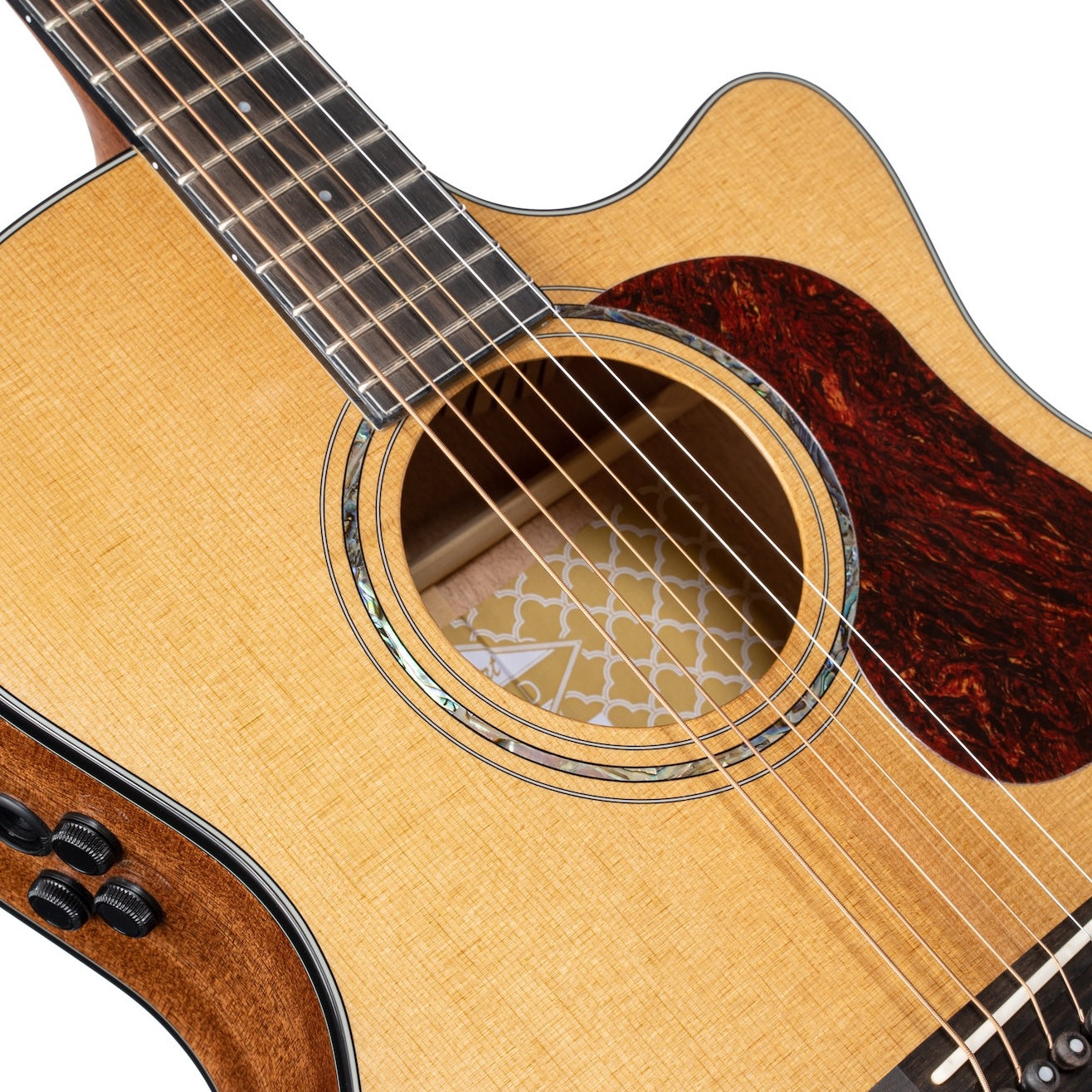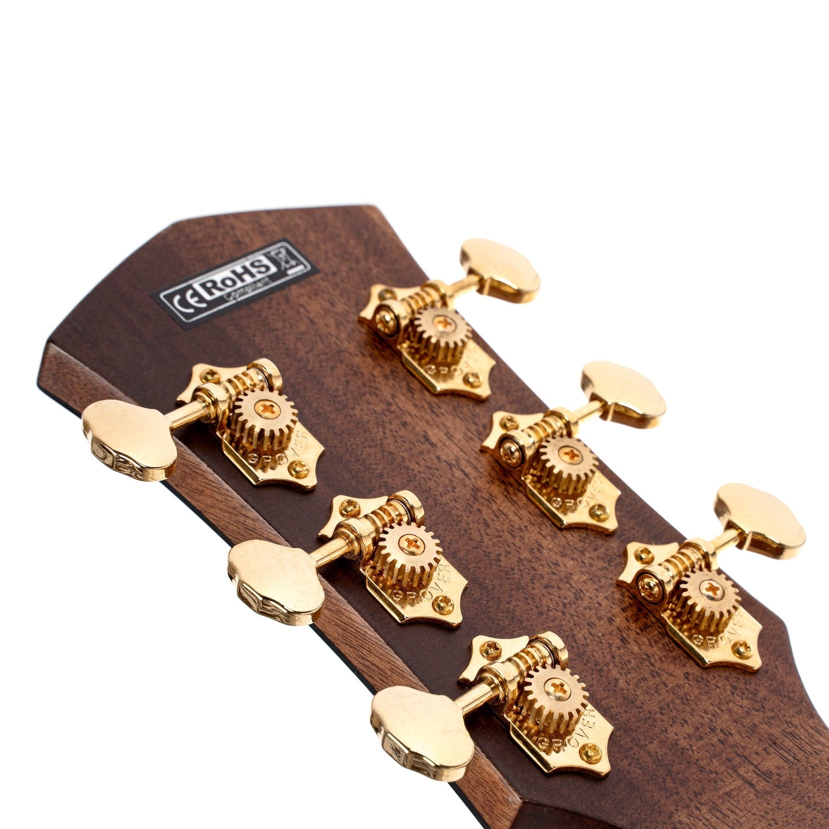 Det som kännetecknar Cort’s Gold-serie är den unika Aged to Vintage (ATV)-behandlingen, som härdar locket av sitkagran för att ge en öppen och fyllig ton – precis som en vintagegitarr, direkt ur kartong. ATV fungerar som en torrefieringsprocess och ger Gold-A6 en stor, naturlig klang med ljusa nyanser och ett starkt, varmt mellanregister. Detta förstärks ytterligare av den massiva baksidan och sidorna i mahogny.