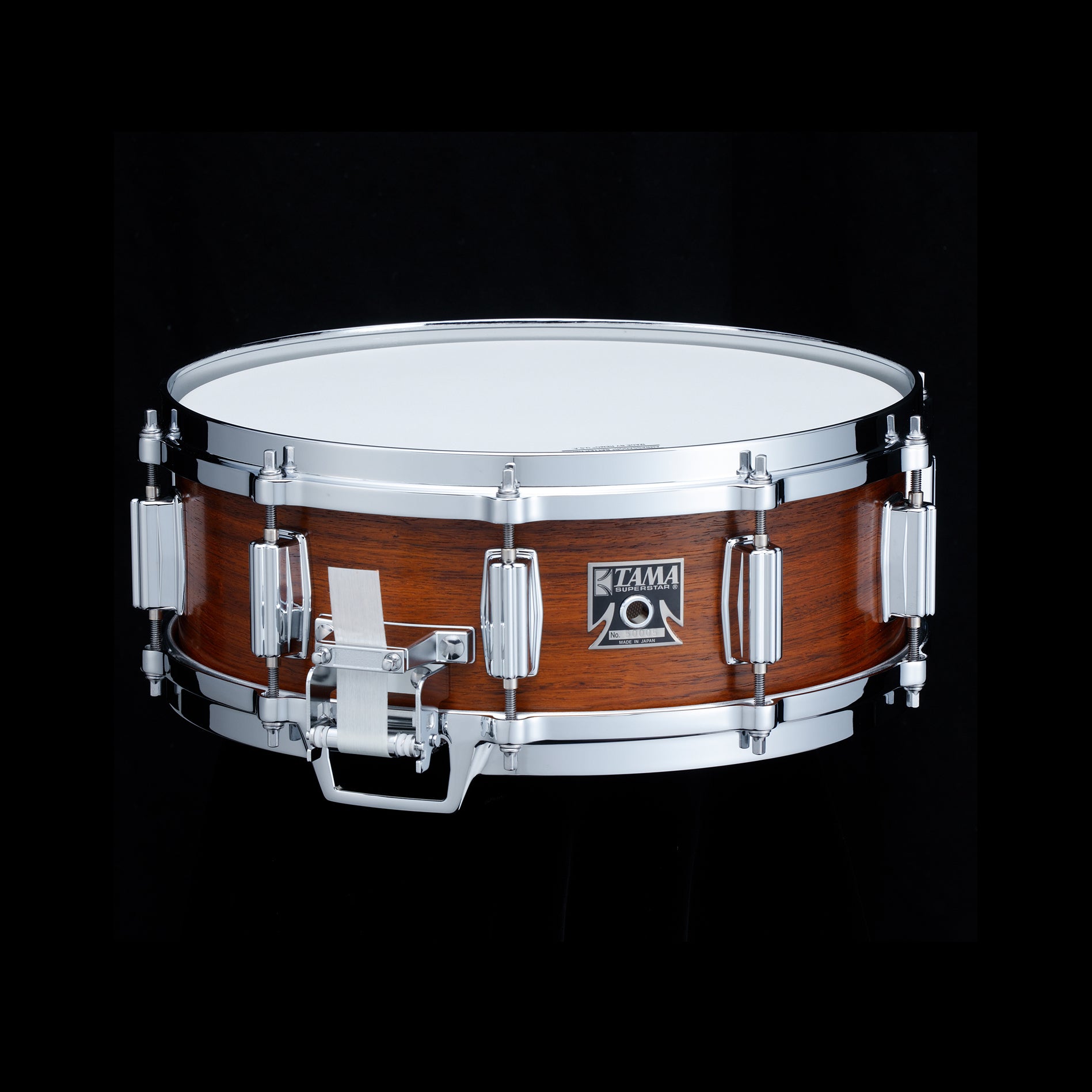 På 1980-talet var TAMAs Mastercraft Rosewood Snare Drum den första och enda trumman i sitt slag. Som ett hårt och tätt material används Rosewood vanligen som gitarrgreppbrädor, och det var det bara på den tiden det fanns på trummor som ett enda ytterskiktsfanér. Full Rosewood trummor är extremt svåra att producera, men deras rena ljud och mörka ton gör dem extremt populära bland trummisar som letar efter ett nytt ljud. Inte långt efter den ursprungliga releasen av Mastercraft Rosewood Snare Drum blev varumärket TAMA synonymt med Rosewood. Denna 50th Anniversary Limited Edition-modell återger troget ljudet från det förflutna. Bekant för de som var med där i början, och en spännande ny upptäckt för de som inte var det.