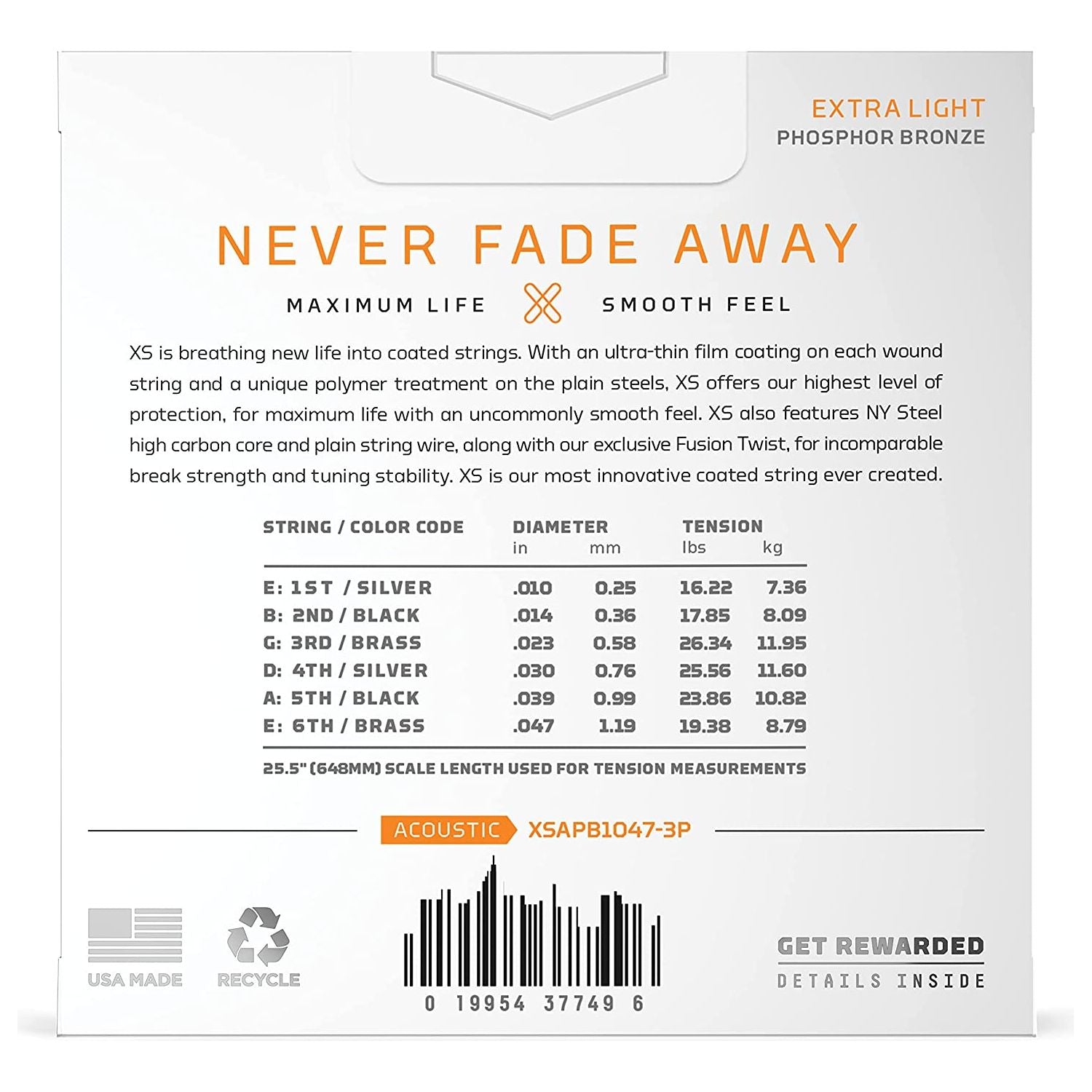 XSAPB1047-3P. Set Acoustic Guitar XS Phosphor Bronze 10-47, Extra Light. 3-pack.
