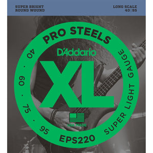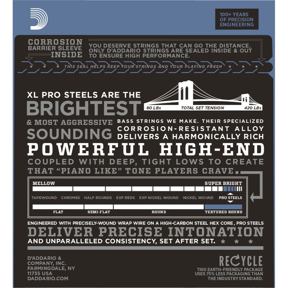 Pro Steels är D'Addarios svar på basisters önskan och längtan efter den perfekta stålsträngen. Ljudkaraktären är brilliant och mycket klar, rik på övertoner och en fokuserad botten med sustain, likt den från ett piano.