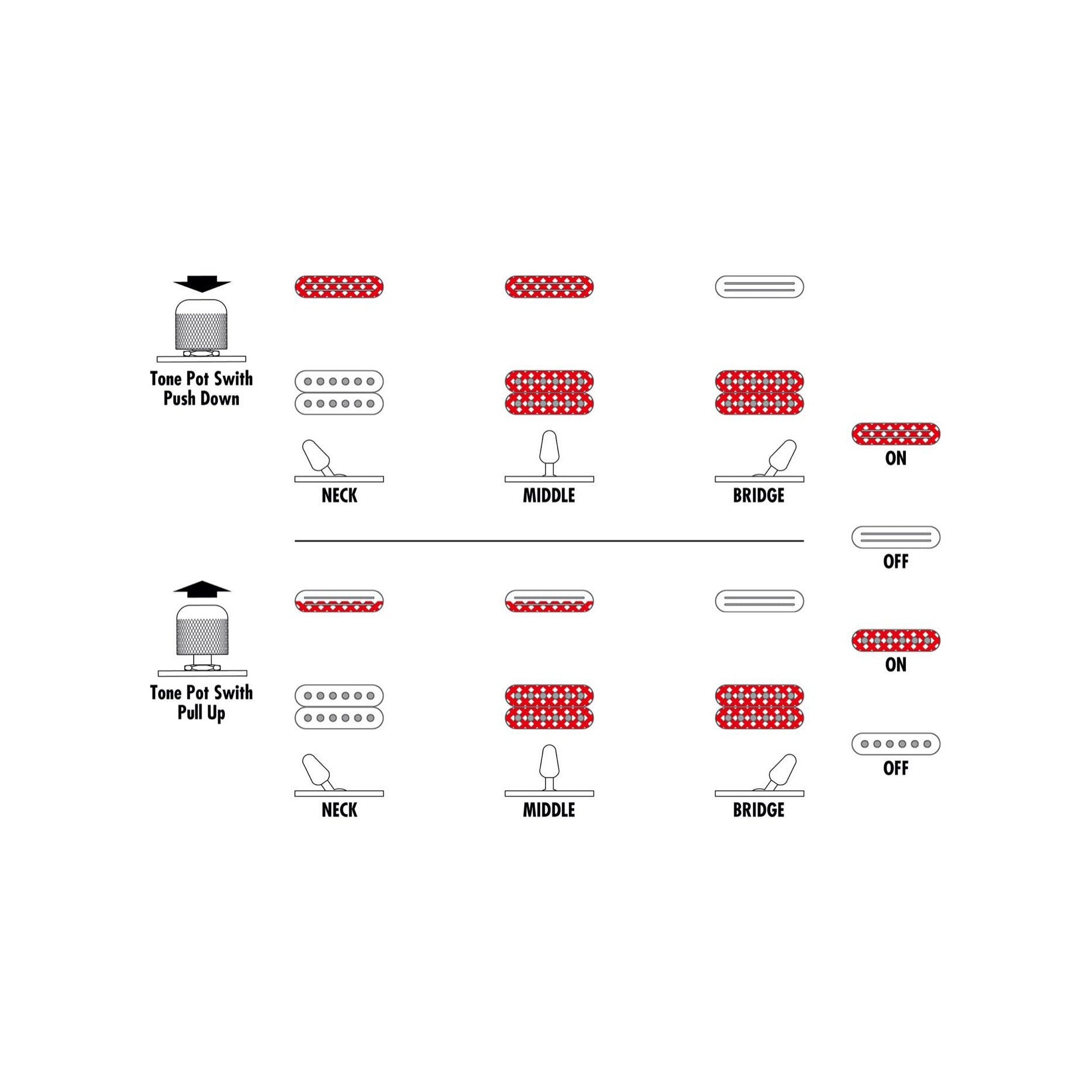 Med mediumoutput mickar (tänk modern PAF), ett high-pass filter (treble bleed, som gör att diskanten inte försvinner när man skruvar ner volymen) på en push/pull pott på volymkontrollen och en splitt för stall och halsmick på en push/pull på tonkontrollen kan man locka en häpnadsväckande mängd ljud ur gitarren.