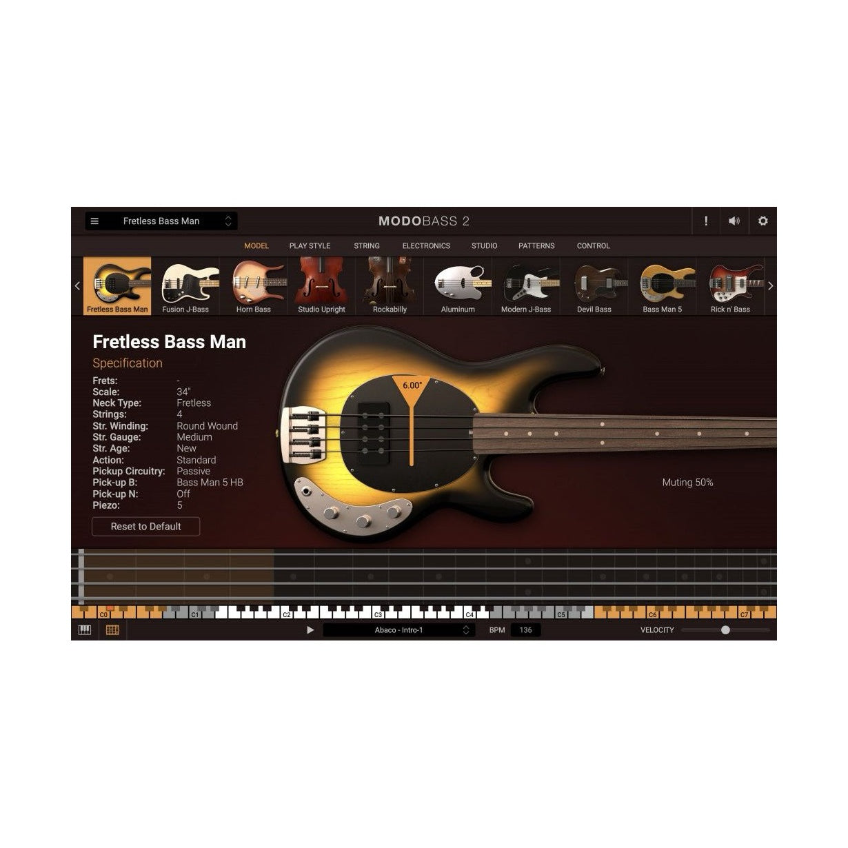 MODO BASS 2 är nästa generations virtuella basinstrument från IK Multimedia – en vidareutveckling av det banbrytande fysiskt modellerade MODO BASS. Version 2 introducerar 8 nya basar inklusive fretless och kontrabas, en helt ny pattern-sektion fylld med realistiska grooves samt avancerade spelkontroller som ger dig total kontroll över ditt sound.