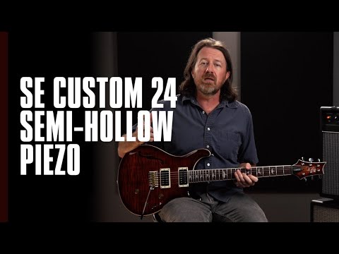 PRS SE Custom 24 Semi-Hollow Piezo är ett sofistikerat och väldigt mångsidigt instrument. Kombinationen av humbucker-mikrofoner och ett Piezo-system gör att det går att få ut riktigt elaka dist-toner i ena stunden till att leverera en ren akustisk ton likt en stålsträngad gitarr i nästa sekund. Kroppen som är av Semi-Hollow design ger inte bara luft till ljudet i humbucker-mikrofonerna den ger även mer liv till det akustiska soundet. Mahognykroppen är försedd med en lönntopp som i sin tur smyckats med fanér med flammig lönn. Halsen är av lönn och har en greppbräda i rosewood.