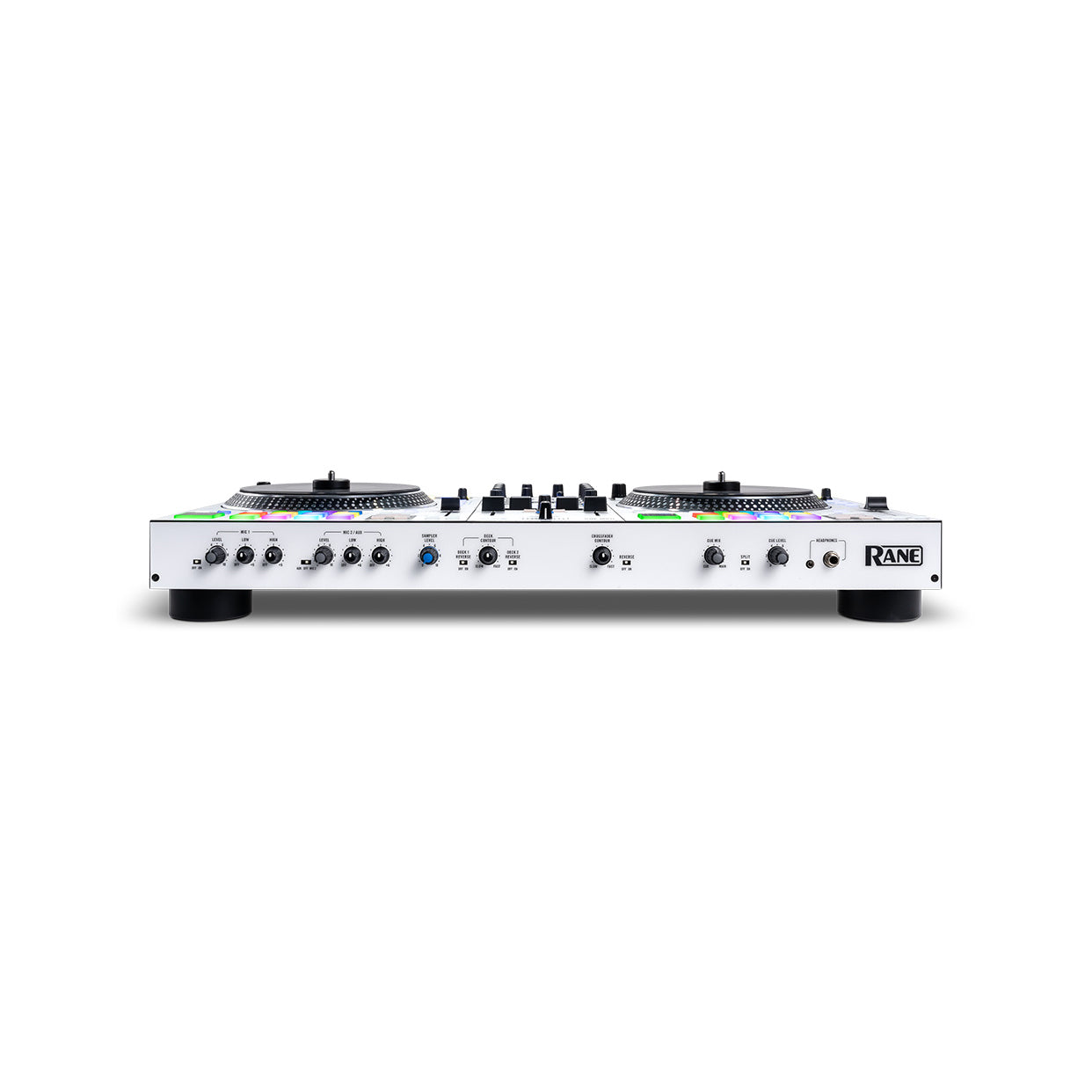 Den eleganta vita finishen gör inte bara RANE ONE MKII till en stilren mittpunkt i din studio eller DJ-bås, utan förbättrar också synligheten av hårdvarans fysiska kontroller under mörka förhållanden. Med en uppsättning professionella anslutningar, inklusive dubbla XLR-utgångar och flera ingångsalternativ, garanteras en sömlös integration i alla slags setuper.