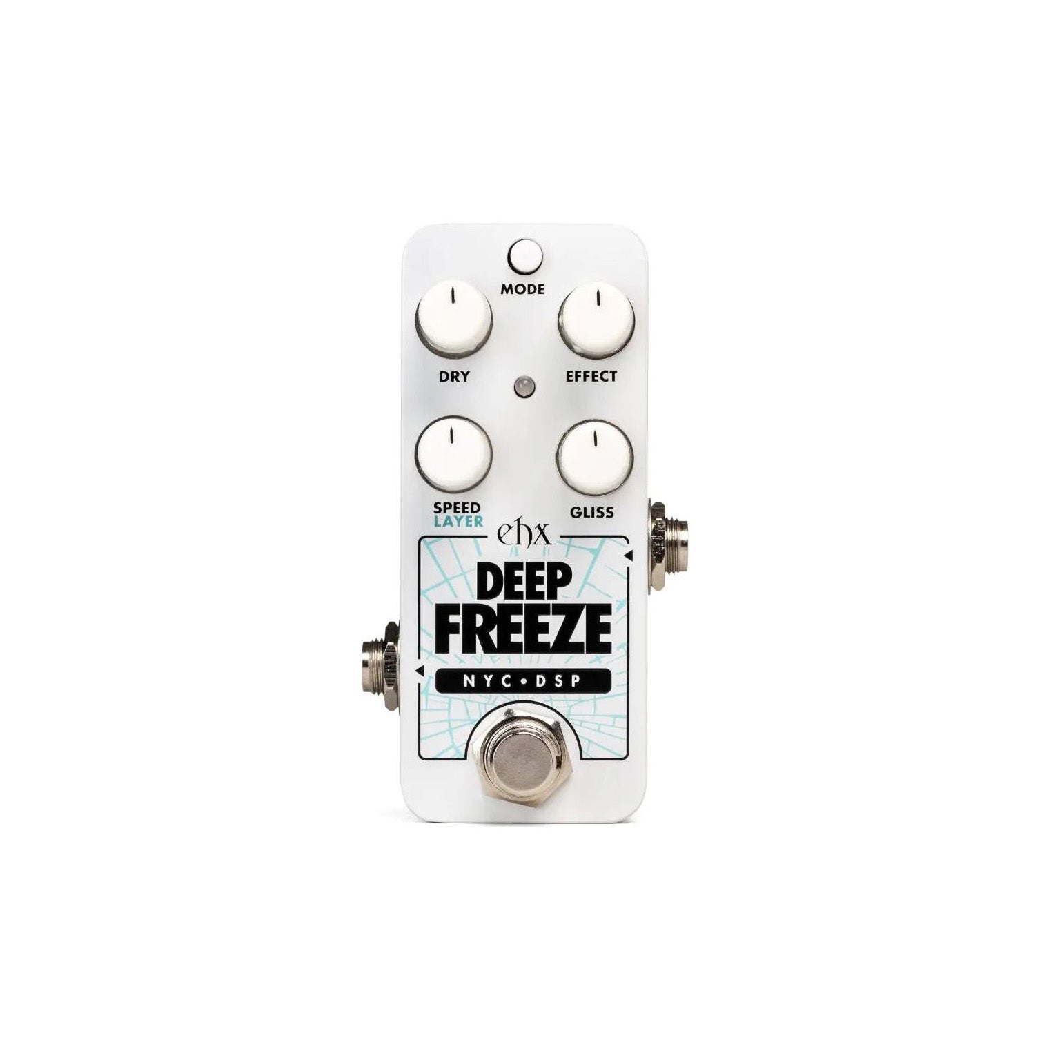 With Pico Deep Freeze gives the opportunity to stop time. Pico Deep Freeze can function as a sustain pedal to let chords and notes ring or to open up whole new worlds in terms of guitar sound. You can also adjust the attack/decay effect, glissando and the mix of the effect signal and the direct signal. Pico Deep Freeze has three different modes, Latch, Moment and Auto, which give almost endless possibilities to use this small compact pedal.