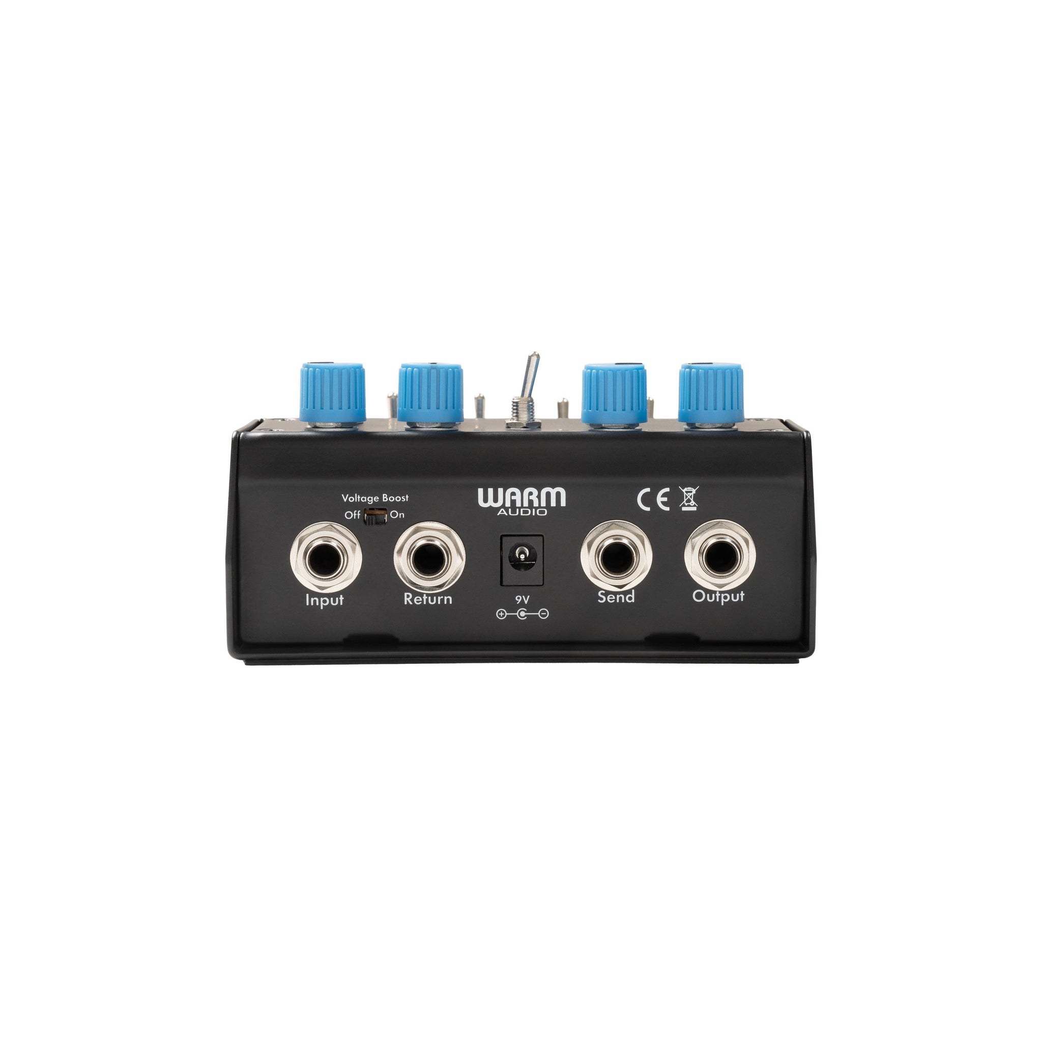 - Anslutningar: ¼” mono in- & utgång, obalanserade send & return-jackar, 9V center-negativ ström