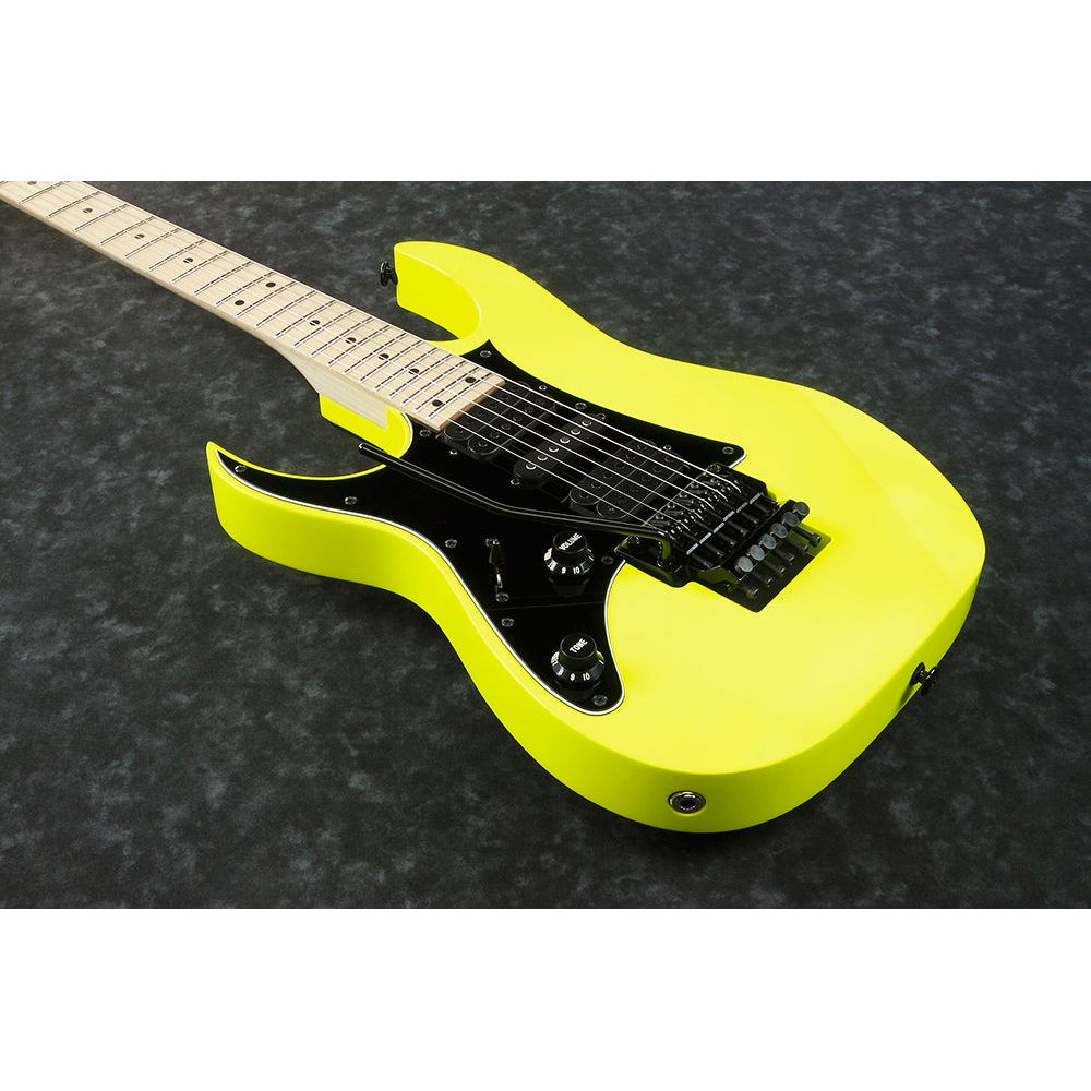 The guitar has an Ibanez Super Wizard neck profile, the thinnest and slimmest version of Ibanez necks. Combined with the flat fingerboard, it's an extremely fast and easy-to-play neck, the ultimate neck for fast, technical riffing and/or trick soloing.