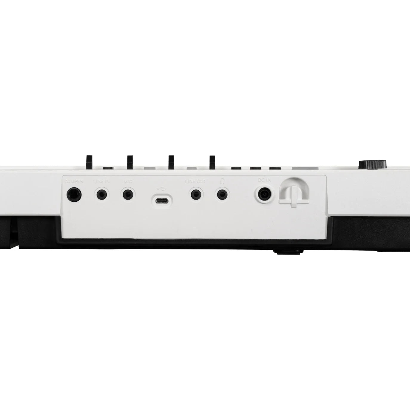 Den 88-tangenters LS-klaviaturen är lätt, responsiv och uttrycksfull, vilket gör den lika lämplig för nybörjare som för erfarna musiker. Framåtriktade högtalare levererar ett fylligt och naturligt ljud som fungerar utmärkt både för övning och livespel.