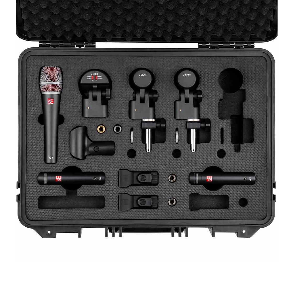 Mikrofonset innehållande sex mickar och hållare för trummor. sE Electronics är en storfavorit bland trummisar och ett självklart val för mängder av ljudtekniker när det ska mickas trummor. sE's trummickar levererar på högsta nivå både live och i studiosamanhang.