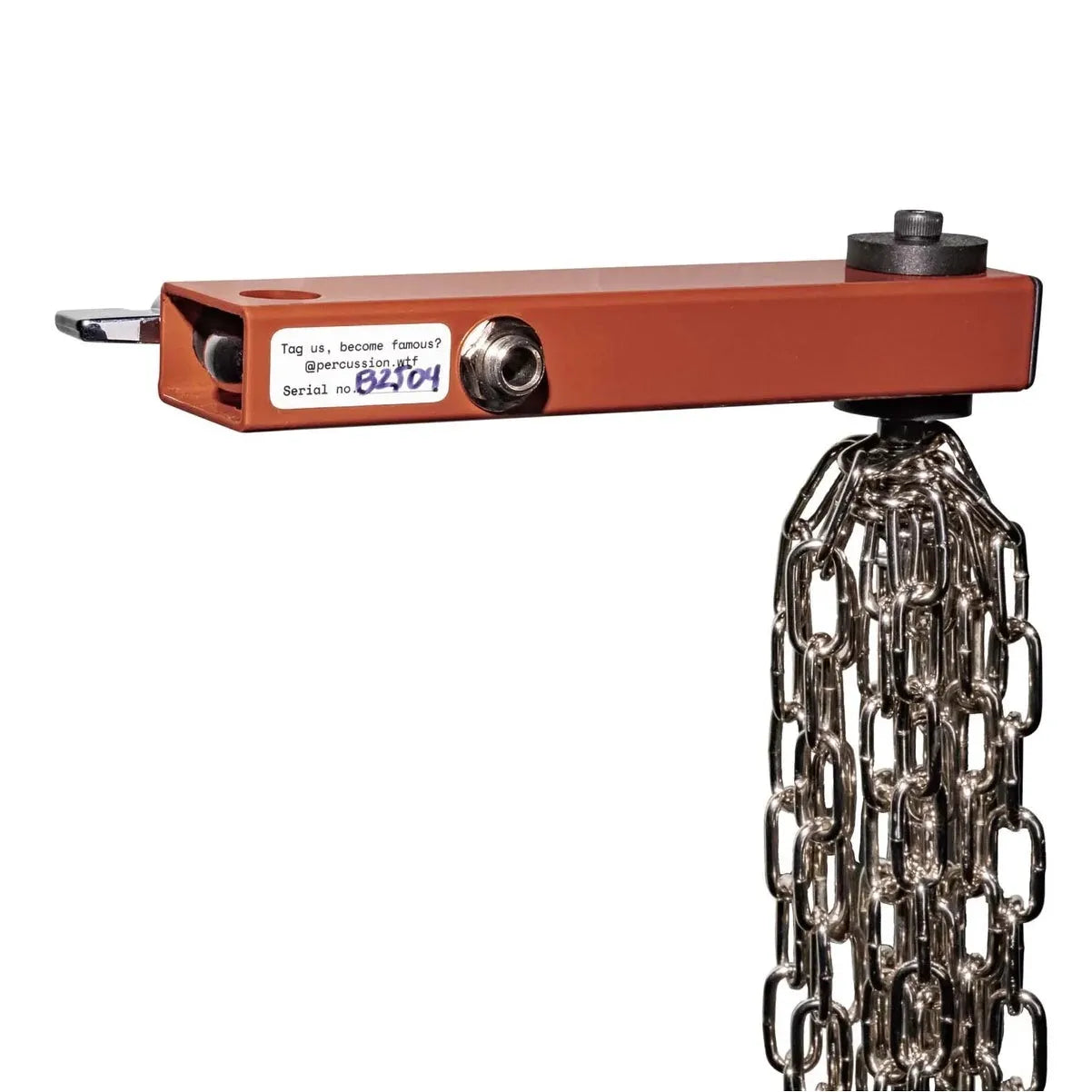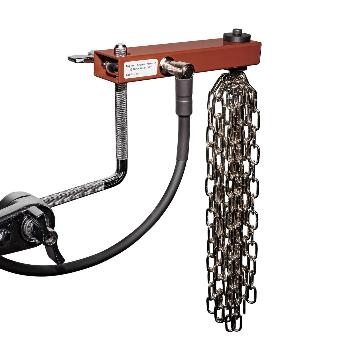 WTF Percussion har alltid velat fånga ett riktigt ”nära” kedjeljud – och det här är lösningen de kom fram till. Den kan användas som en crash-ersättare, eller för att förstärka hi-hats, virveltrummor och andra instrument genom att helt enkelt vila kedjelänkarna på dem!