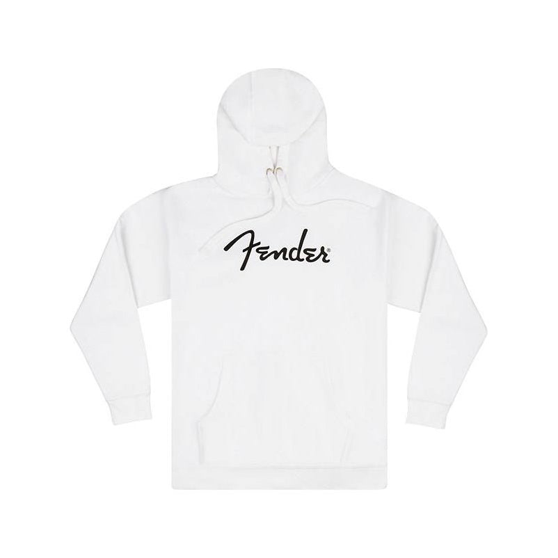 Fender's® cozy white spaghetti logo hoodie takes you from the street to the studio.