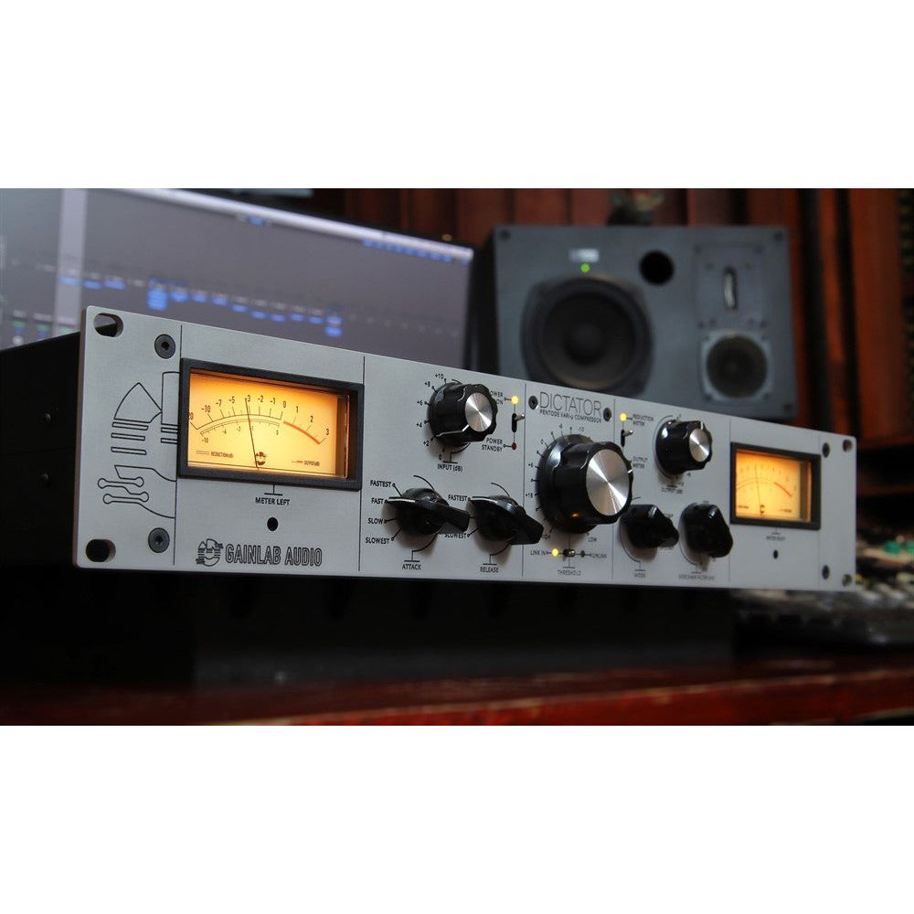 Gainlab Audio Dictator är en high-end dual-rör vari-mu kompressor som levererar mjuk, musikalisk kompression med rika övertoner och vintagevärme. Inspirerad av klassiska rörkompressorer briljerar Dictator i att tillföra djup, "glue" och karaktär till din mix, mix-buss och enskilda spår. Med sina mångsidiga kontroller 100% analoga signalväg erbjuder den allt från subtil dynamisk kontroll till kraftfull, färgstark kompression. Oavsett om du jobbar med sång, trummor eller en hel mix ger Gainlab Audio Dictator den ljudmässiga auktoritet och flexibilitet som proffs kräver.