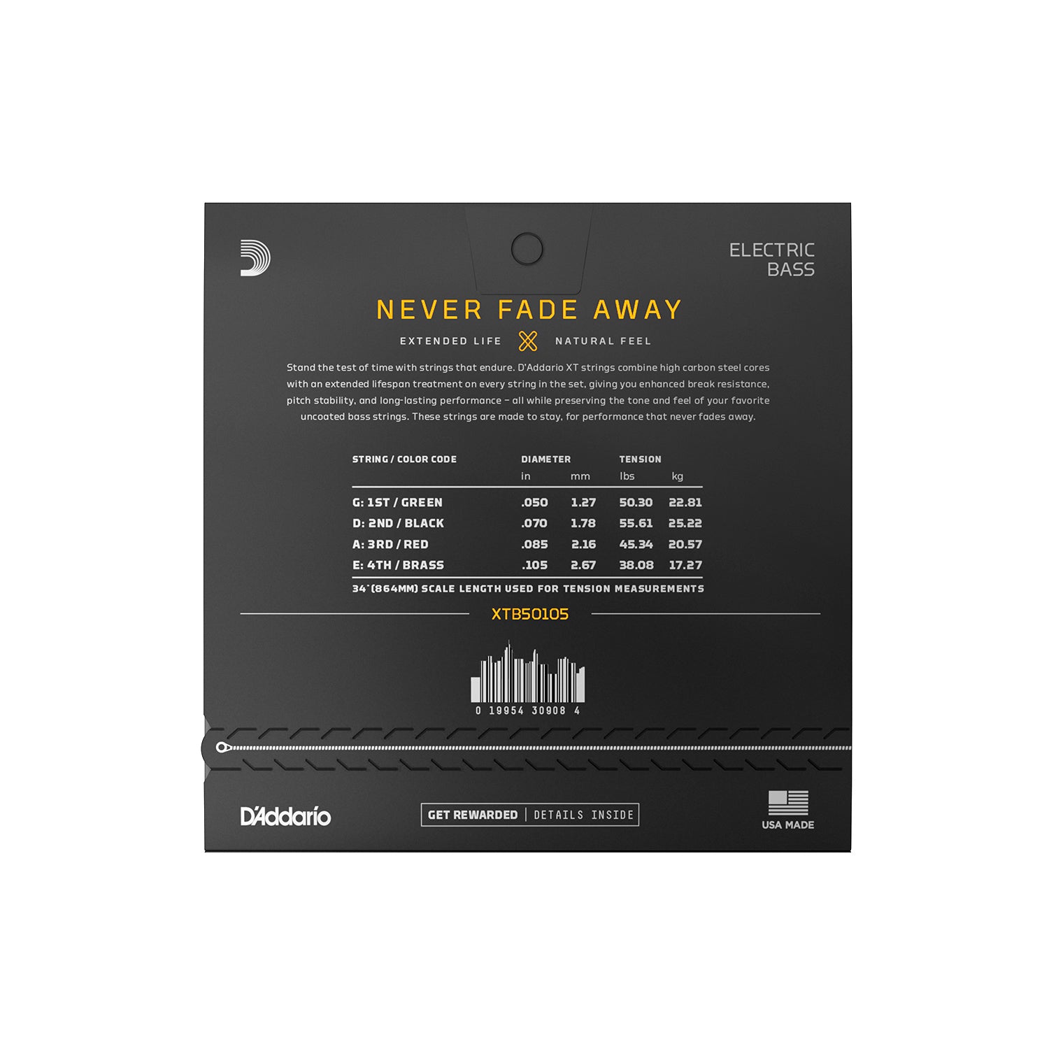 Each individual string in a set of XT is treated with D'Addario's protective microcoating, a super-thin surface treatment that effectively repels dirt and sweat. The XT strings last 4 times longer than traditional uncoated strings without affecting the tone and playing feel that D'Addario's strings have become recognized for. D'Addario's unique steel carbon core in combination with a strong anchoring of the ball, through so-called Fusion Twist technology, gives a string with unparalleled strength and which holds the tuning significantly better than ordinary strings.